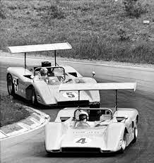 Radnabenmotoren von Rotax, je 110 PS, oder der MK10 von McKee mit 7,5 Liter Oldsmobile V8 Turbo, dessen Bremsen sich nach kurzer Zeit explosionsartig in Rauch auflösten! Der Honker II ein Werksprojekt von Ford, das grandios floppte, Mario Andretti-er mußte ihn fahren-wachte Jahre später mit Angstschweiß übersät, und von Alpträumen gequält immer noch auf, es war das Schlechteste, was ich jemals gefahren bin, der Konstrukteur (Len Terry) unter Alkohol und Drogen (?). Der Lola T222 mit einen riesigen Flügel gleich einer Schneeschaufel, Jackie Steward, Jahre danach immer noch mit zitternden Knien, 800 PS, extremer Radstand, Reparaturen noch bei der Startaufstellung, oder Chaparrals weiser Wal, der 2H, es sollte auf der Geraden so rasant sein, dass es nicht notwendig sei, damit schnell in die Kurven zu fahren, der Fahrer, er lag auf den Rücken, sah weder links, noch rechts, nur Spiegel halfen ihm, John Surties, der ihn fuhr, „das Rennen wie ein Blindflug“!