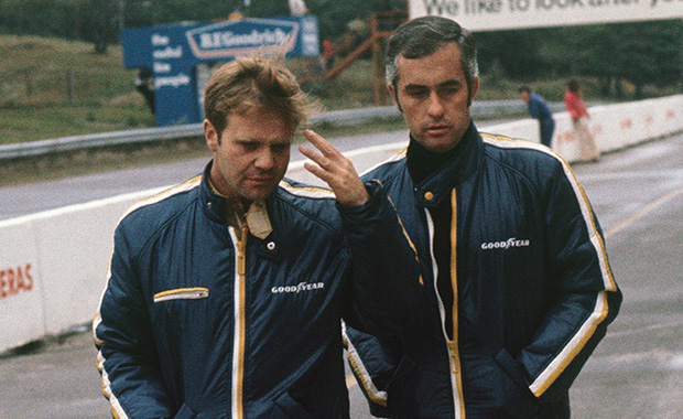 Mark Donohue mit Roger Penske. Das Penske Racing Team eines der erfolgreichsten bei IndyCar und NASCAR Rennen.