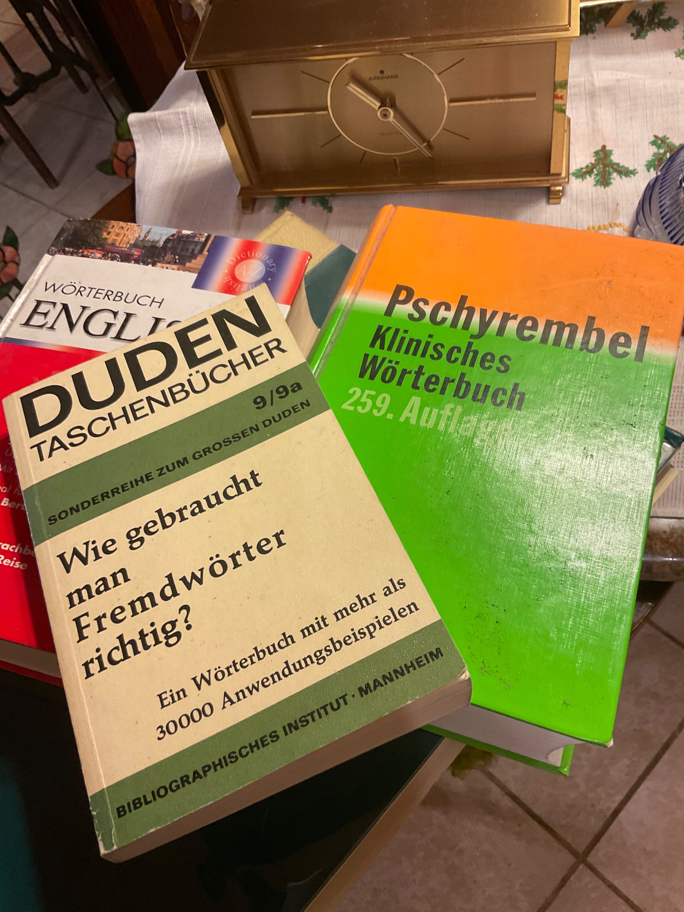 Wörterbücher habe ich früher fast nur zum Englisch lernen genutzt. Ich war in der Schule eigentlich immer recht gut in Deutsch und brauchte nur selten den Duden. Da ich mit dem Einstieg in den Bürojob Ende 2000 deutlich mehr Fremdwörter verwende, muss ich dann doch hin und wieder mal den Online-Duden benutzen. Und die Online-Korrektur in den gängigen Apps hilft ja auch, aber darauf verlasse ich mich nicht.