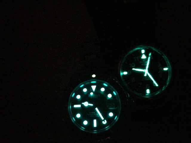 Im übrigen sehen die Zeiger des Divers wesentlich schöner aus, als die es Fliegers, denn dort war ja gar keine Lume vorgesehen.