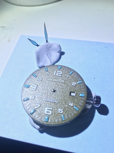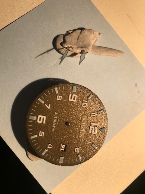 So gestern hab ich den Zusammenbau der beiden gewaagt. Beim Diver musste ich nach setzen des Minutenzeigers einsehen, das ich das wohl nochmal neu machen muss, da die Lume aus Ziffernblatt und Zeiger je einen Hauch zu dick ist, sodass die Zeiger immer wieder aneinander oder am Ziffernblatt hängen bleiben.