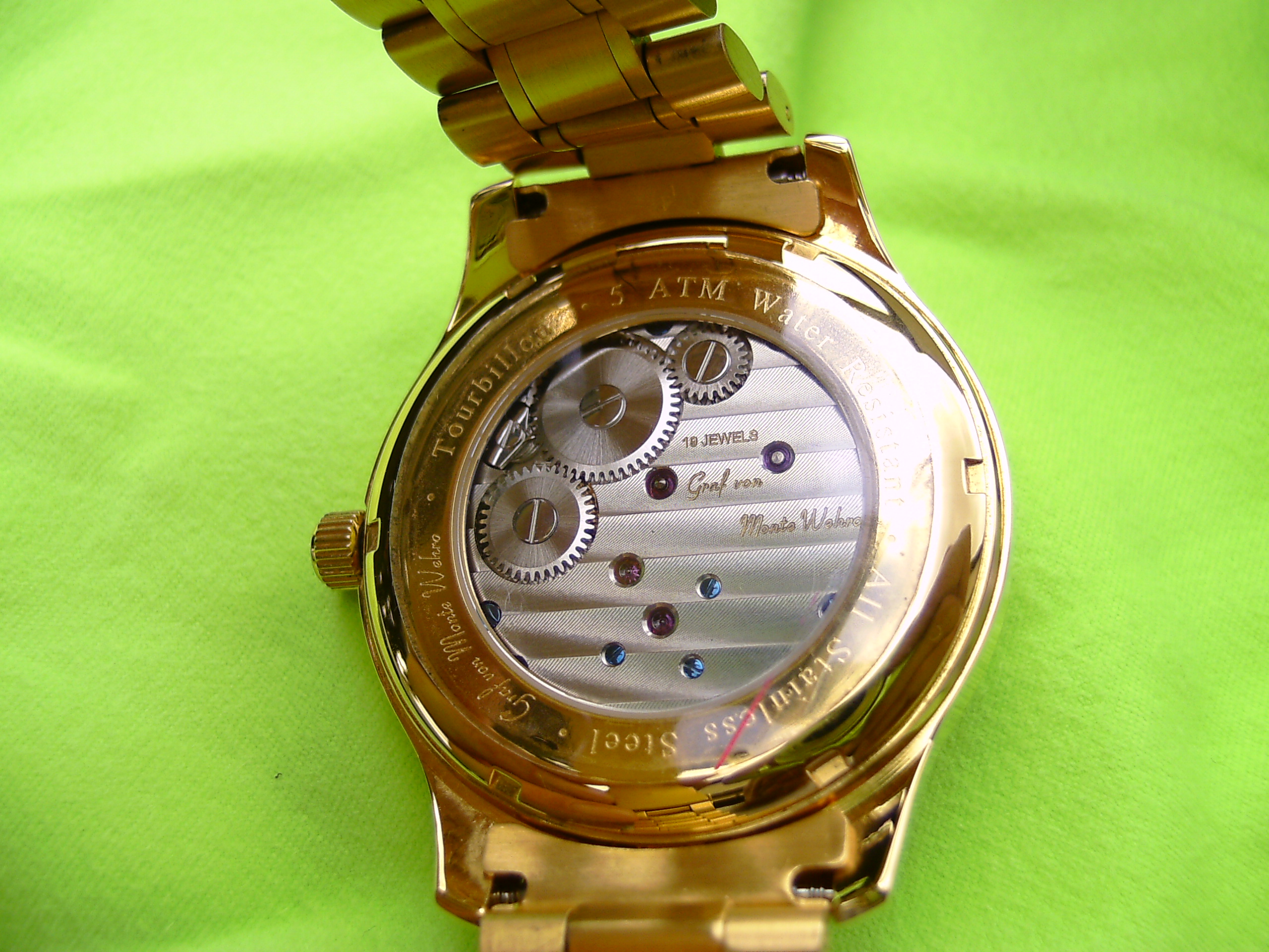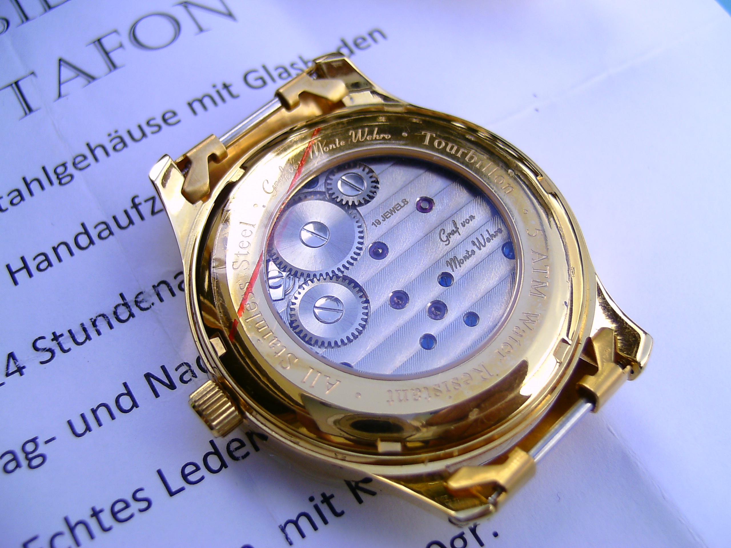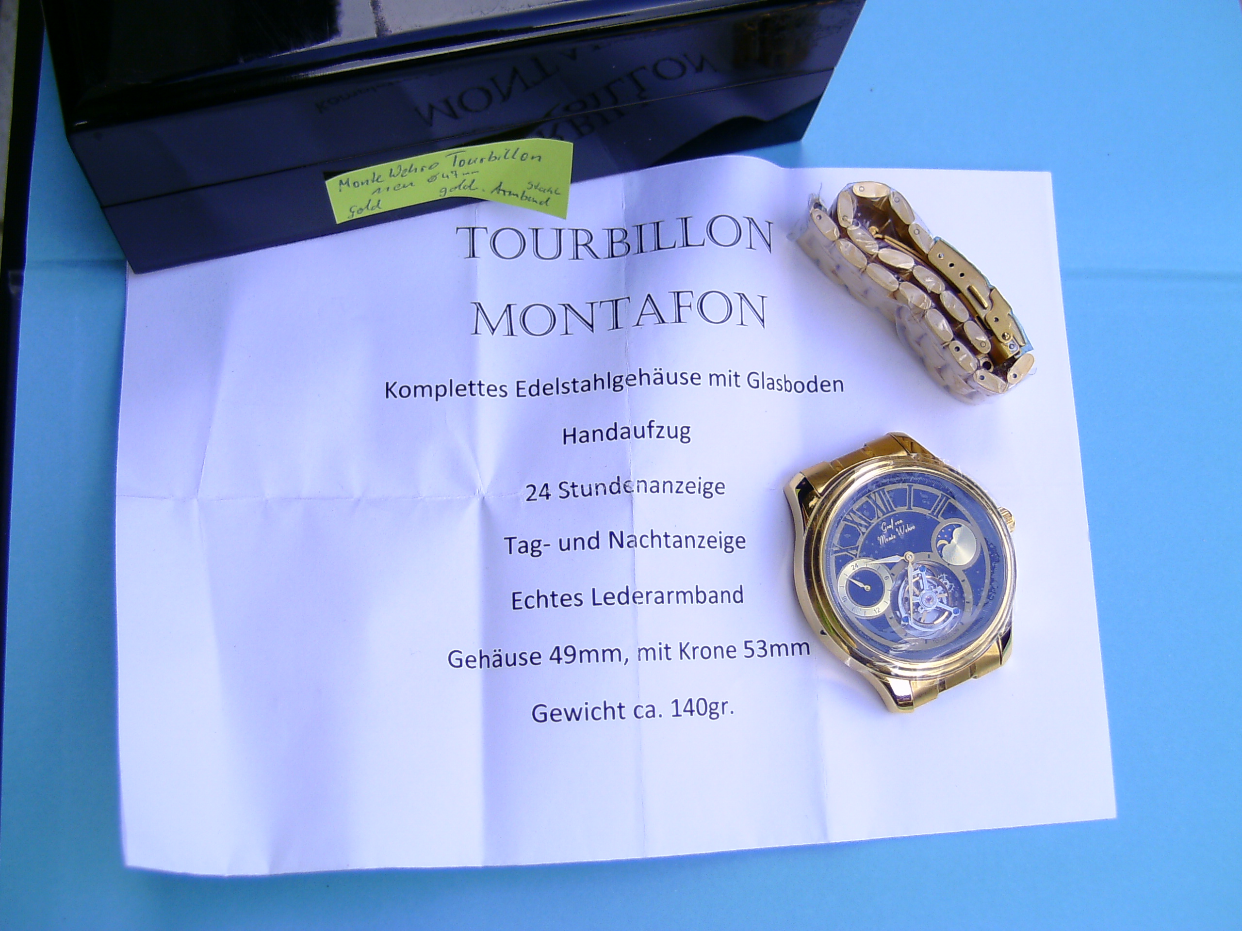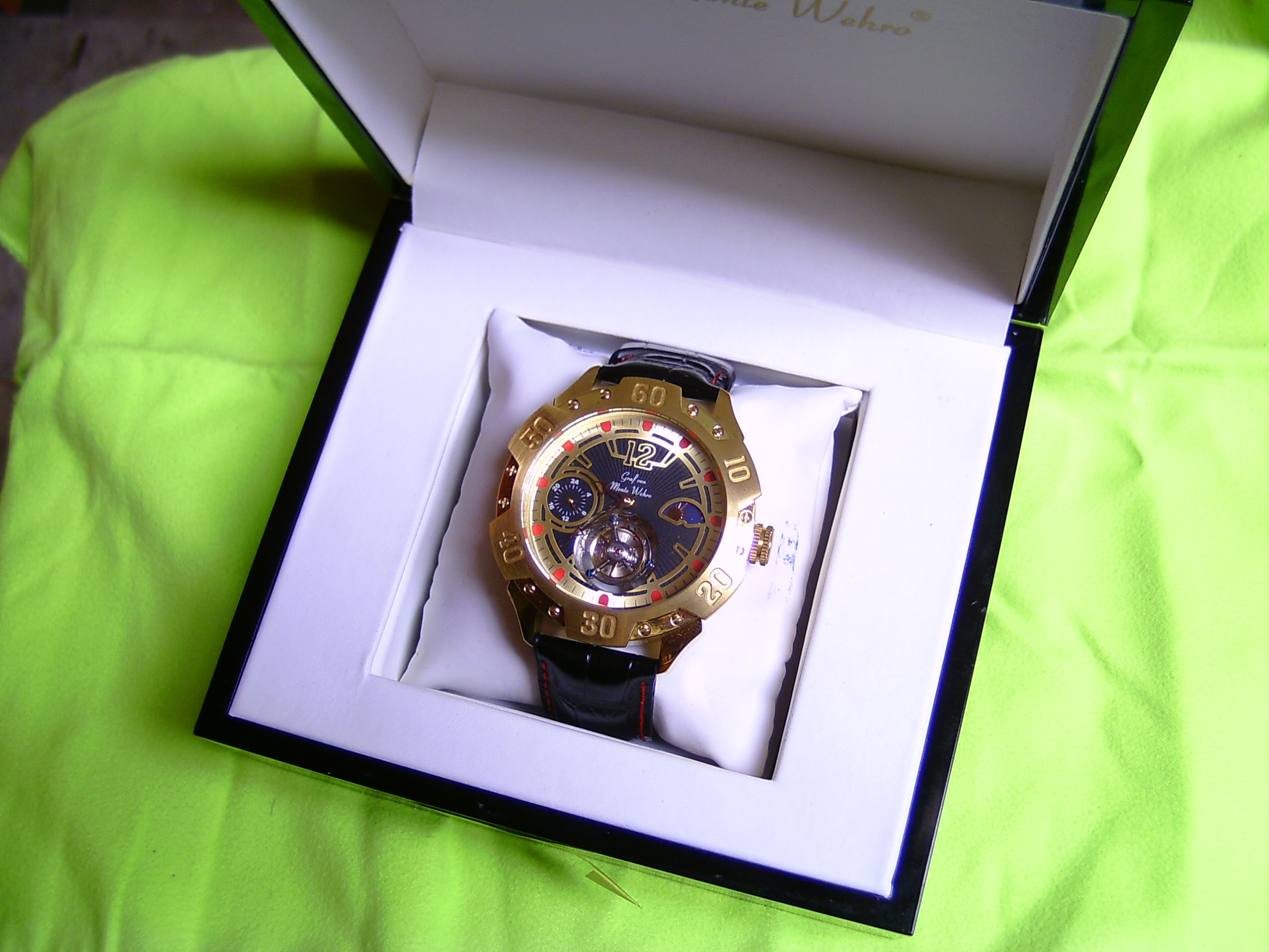 08 Sep. 2019 19:59Eine Tourbillon-Armbanduhr der Marke "Graf von Monte Wehro" Eine Firma, welche es nicht mehr gibt, und somit deren Produkte immense Wertseigerungschancen haben.