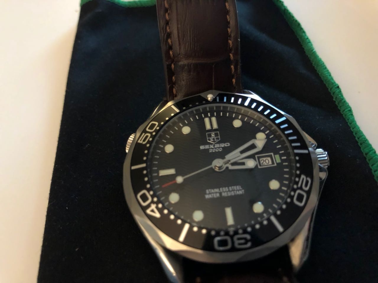 Zur Uhr selbst: Erstaunlich gut zu dem Kurs, ebenfalls gute Lume, wenn auch nicht sehr lange nachleuchtend. Lünette hat minimales Spiel ist aber exakt zentriert.