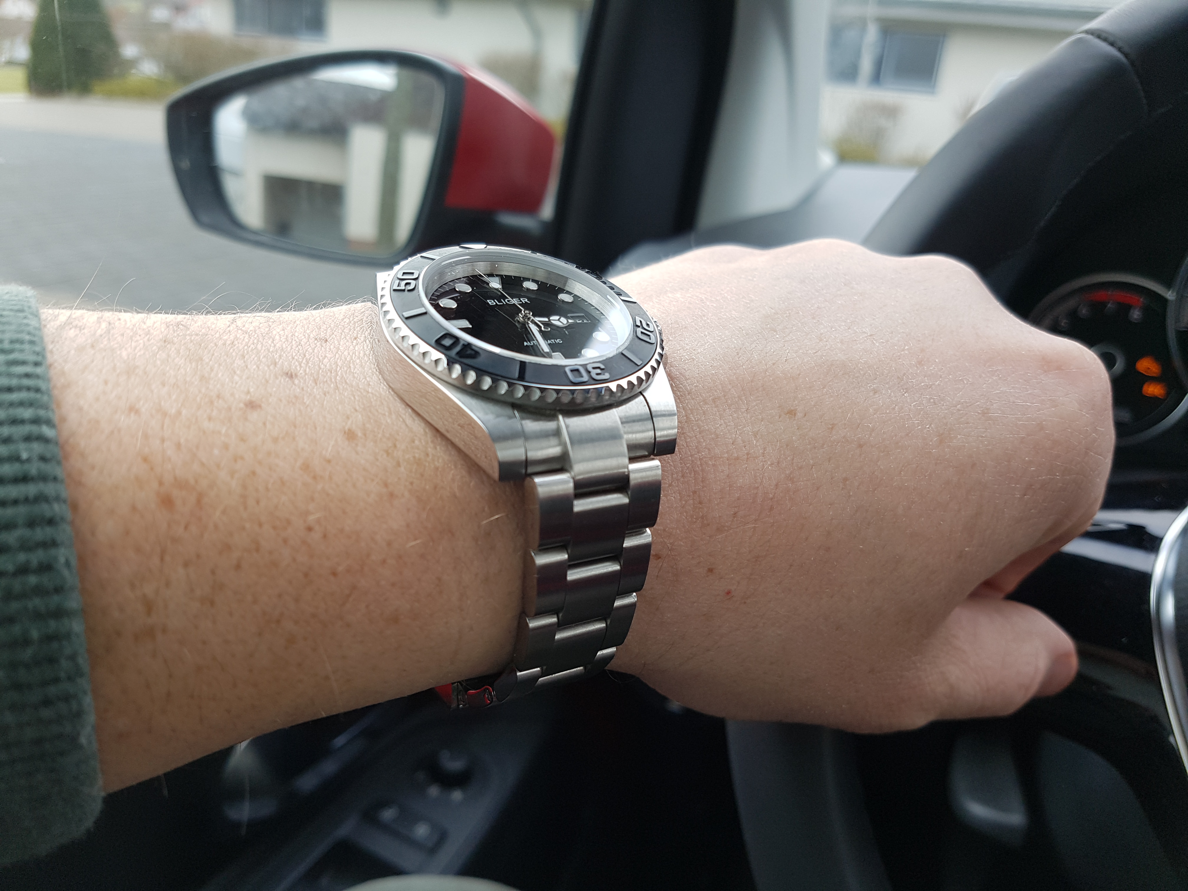 Uhrsack schrieb: Seit ein paar Tagen trage ich die Bliger mit der matten Yachti Lünette am Arm, 40er Größe, genau genommen 40,7mm.