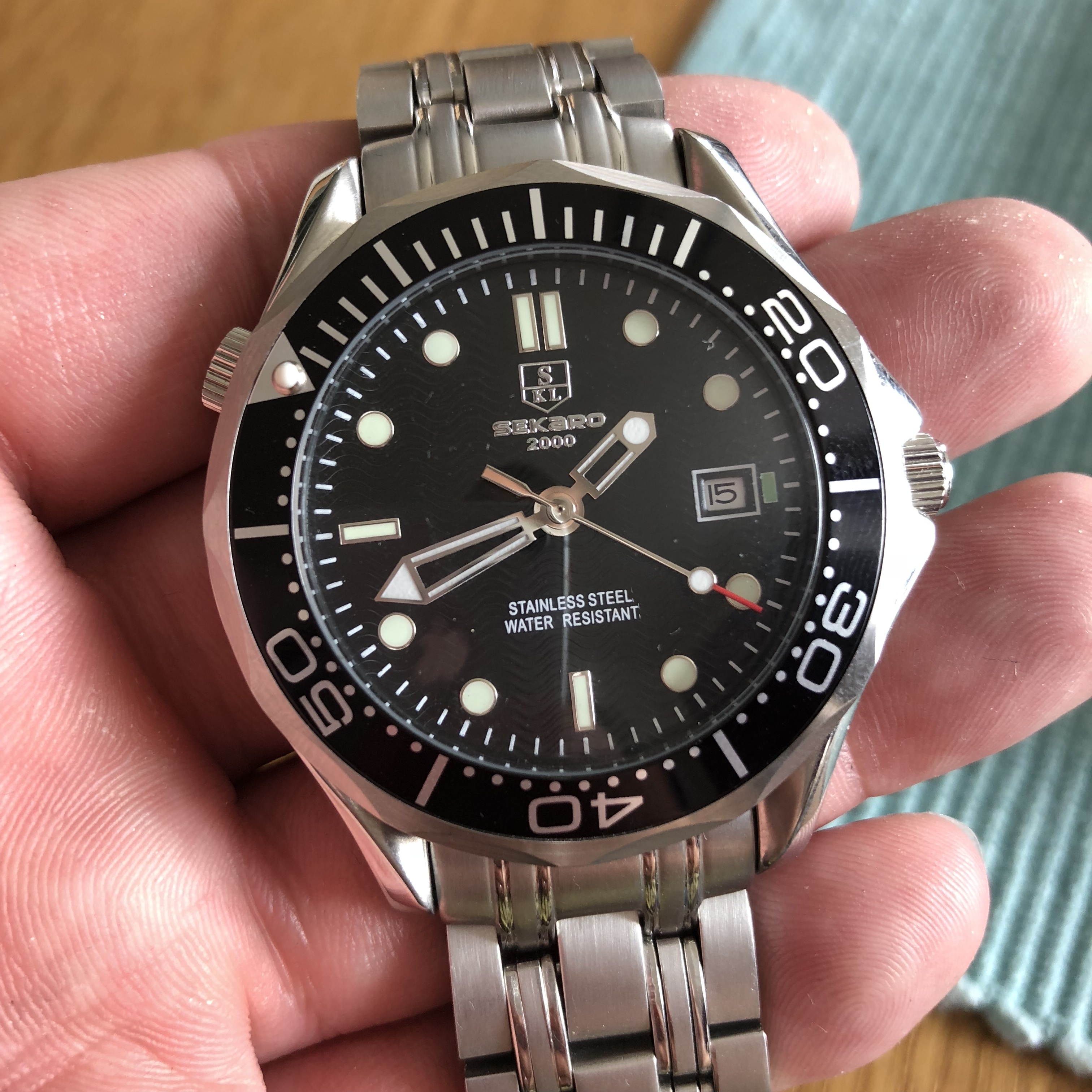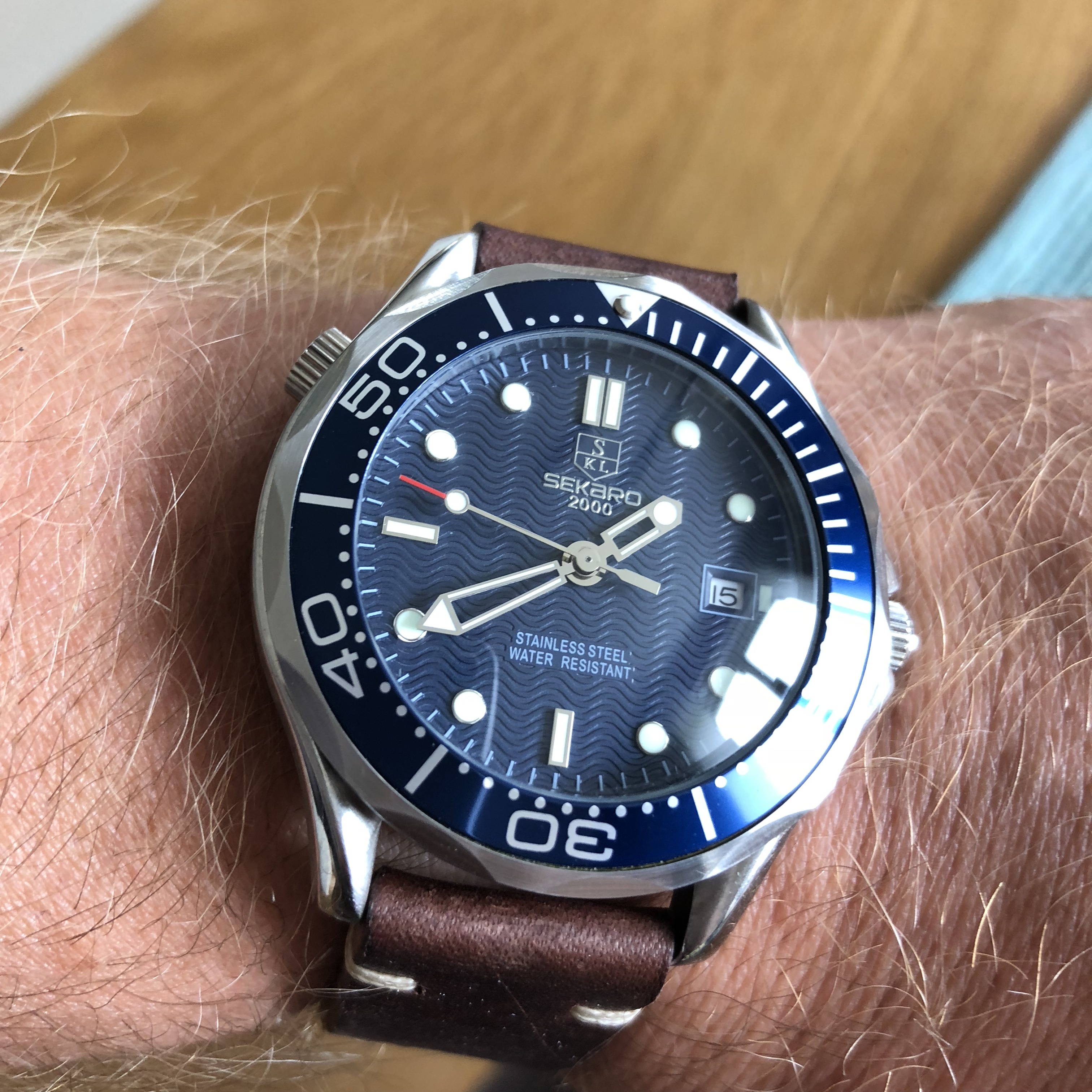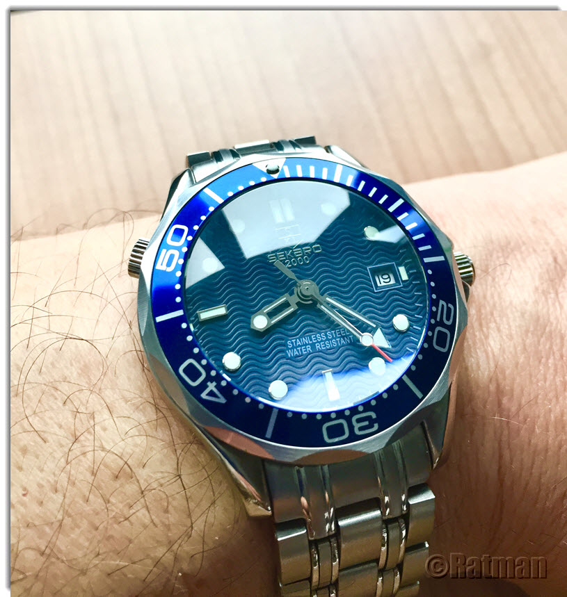 Zuhause habe ich dann nochmal alle drei Sekaros ausgepackt und mich nach kurzer Überlegung für die "Ripple Blue" entschieden, obwohl diese im Gegensatz zu den beiden anderen nicht über den "007"-Sekundenzeiger verfügt. Die beiden anderen habe ich dann in den MP des Uhrforums und in unseren MP eingestellt, wo sie dann gestern auch einen neuen Besitzer gefunden haben.