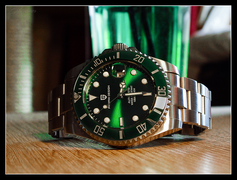 Ach ja, bei der Grünen haben der Minuten- und Studenzeiger auch andere Lume, eher türkis, erinnert an BGW9, bei der Schwarzen ist die Lume eher bläulich.