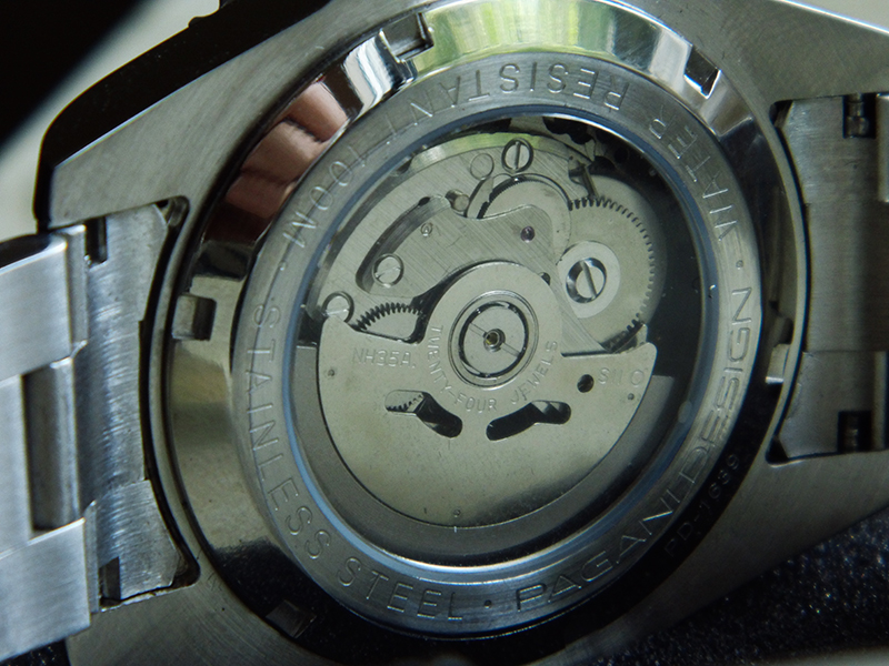 Ich habs mich bisher leider nicht getraut. Das Werk ist ein chin. Nachbau vom 2893-2 mit GMT Funktion, vom Gehäuse etc. sehe ich ansonsten keinen großen Unterschied zur Steini und die Saphirlünette finde ich beim Chinesen sogar gelungener/hochwertiger als die Alu von der Steini.....