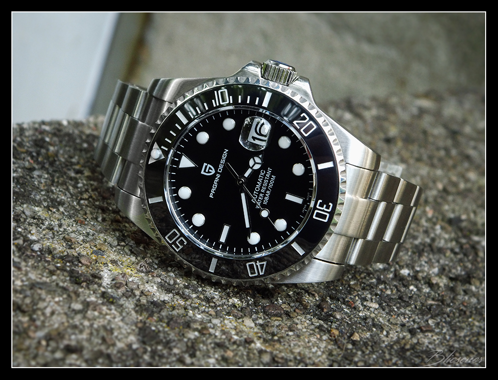 und: die -Bliger- hat 40mm DM.... der Rest ist bestimmt purer Zufall...spielen darf: Das Zifferblatt weist doch einige Differenzen auf. Die Schrifttype für die 3-6-9-12 ist zwar recht ähnlich, aber sieht bei der Bliger deutlich fetter aus. Die Spot-Indices haben bei der Bliger noch zusätzliche Striche und der Sekundenzeiger ist anders. Für den Preis aber trotzdem eine nette Uhr