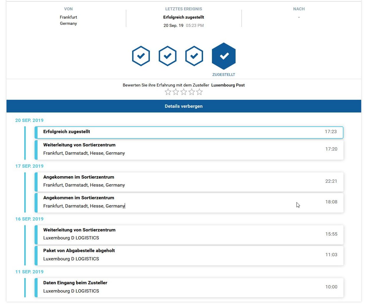Die zeigten mir einige zugestellte Sendungen korrekt an, während das ALI-tracking diese als