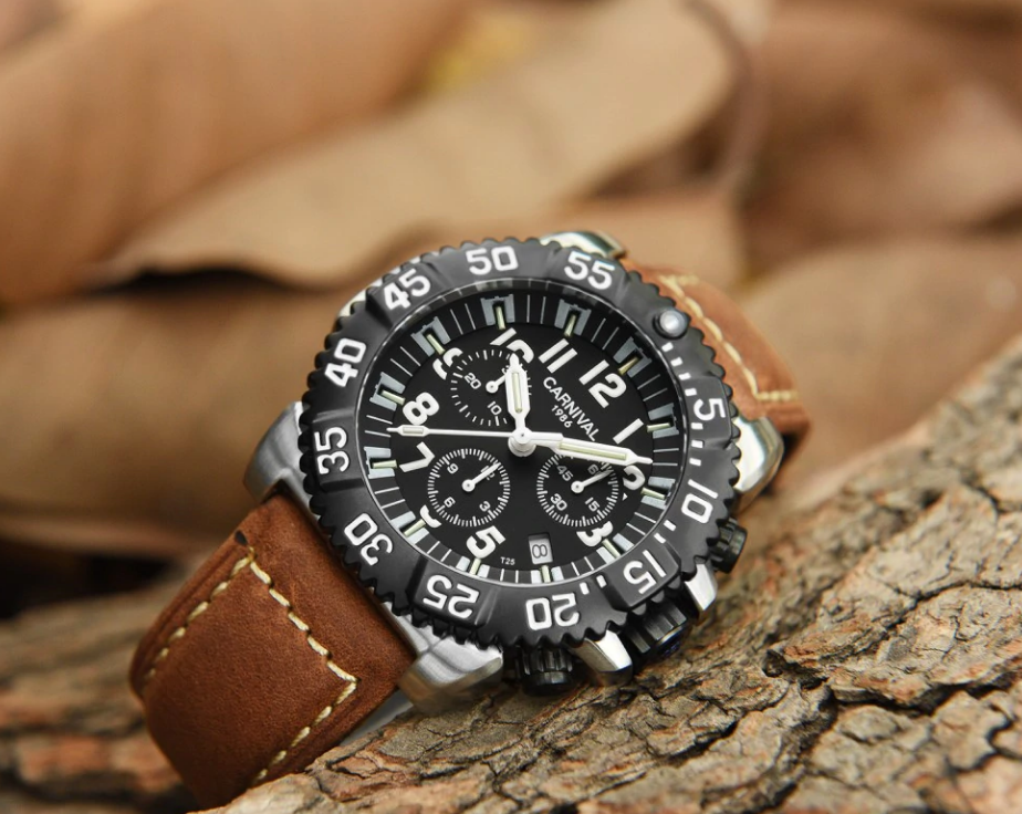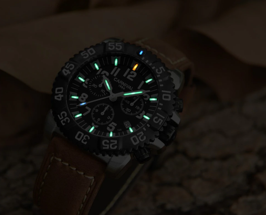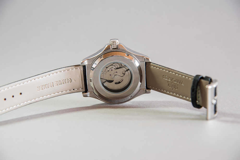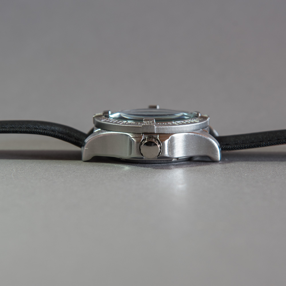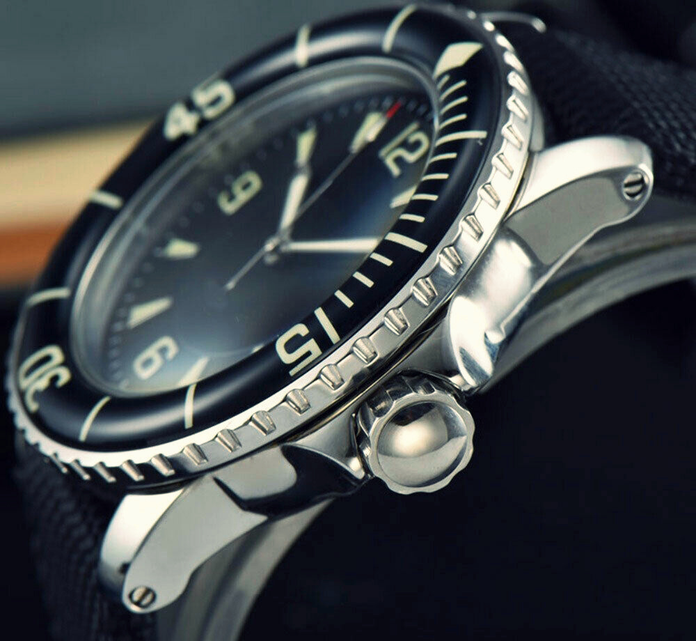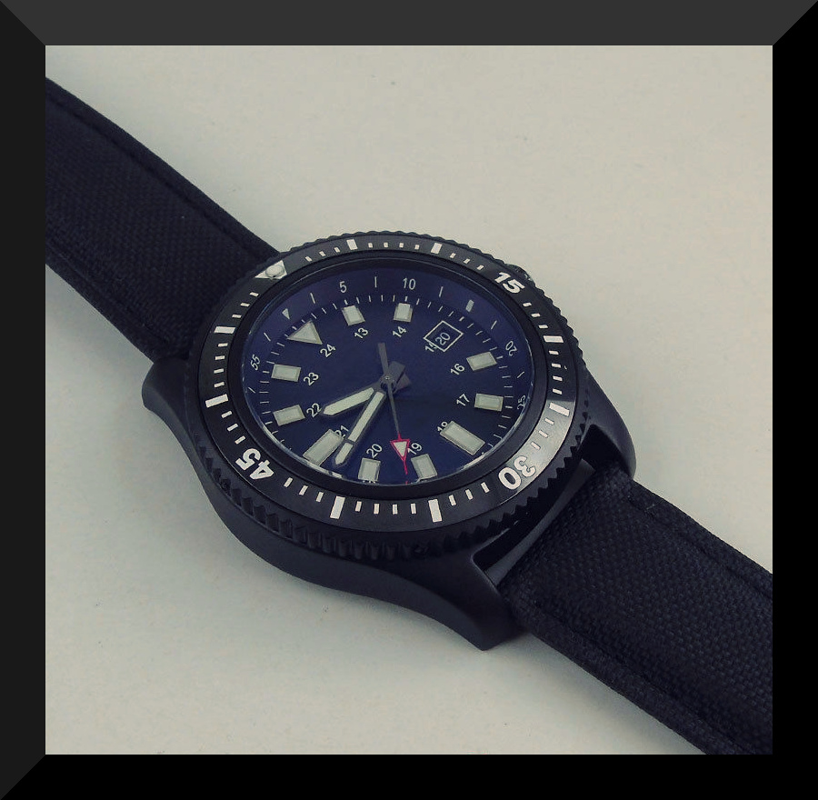 Auf den Fotos schlecht zu erkennen das es ein tiefschwarzes Zifferblatt ist. Je nach Licht Einfall changiert das Glas zu Blau was mir aber gefällt und im