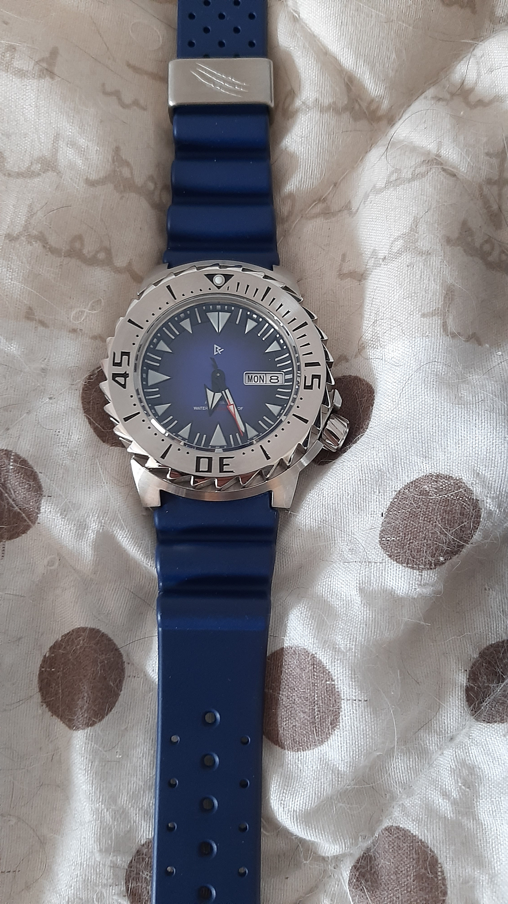 15 Apr. 2021 16:06 - 15 Apr. 2021 16:18Die gerstern zeitgleich gelieferte San Martin : Und zu guter letzt kam gerade eben die blaue Retangula Monster: Alles tolle Uhren, wobei die Pagani doch qualitativ etwas hinter den anderen beiden liegt, was beim Preisunterschied auch nicht weiter verwunderlich ist (knapp über 80,- Euro ggü. um die 150,- bei den anderen beiden).Verbaut ist bei allen dreien ein NH35A bzw. NH36A, welche sicherlich noch lange laufen werden.Was mich im Moment noch etwas an der Pagani stört, ist die fehlende Feinverstellung an der Schliesse, das Band hat ein halbes Glied, womit man es wohl einigermaßen einstellen kann.Bei der Monster werde ich wohl mal testen, ob man das Metallarmband der Heimdallr Monster montieren kann, wenn ja, würde ich versuchen, ob man nicht so eines irgendwo einzeln beziehen kann, das ist nämlich qualitativ und habtisch ne echte Wucht!