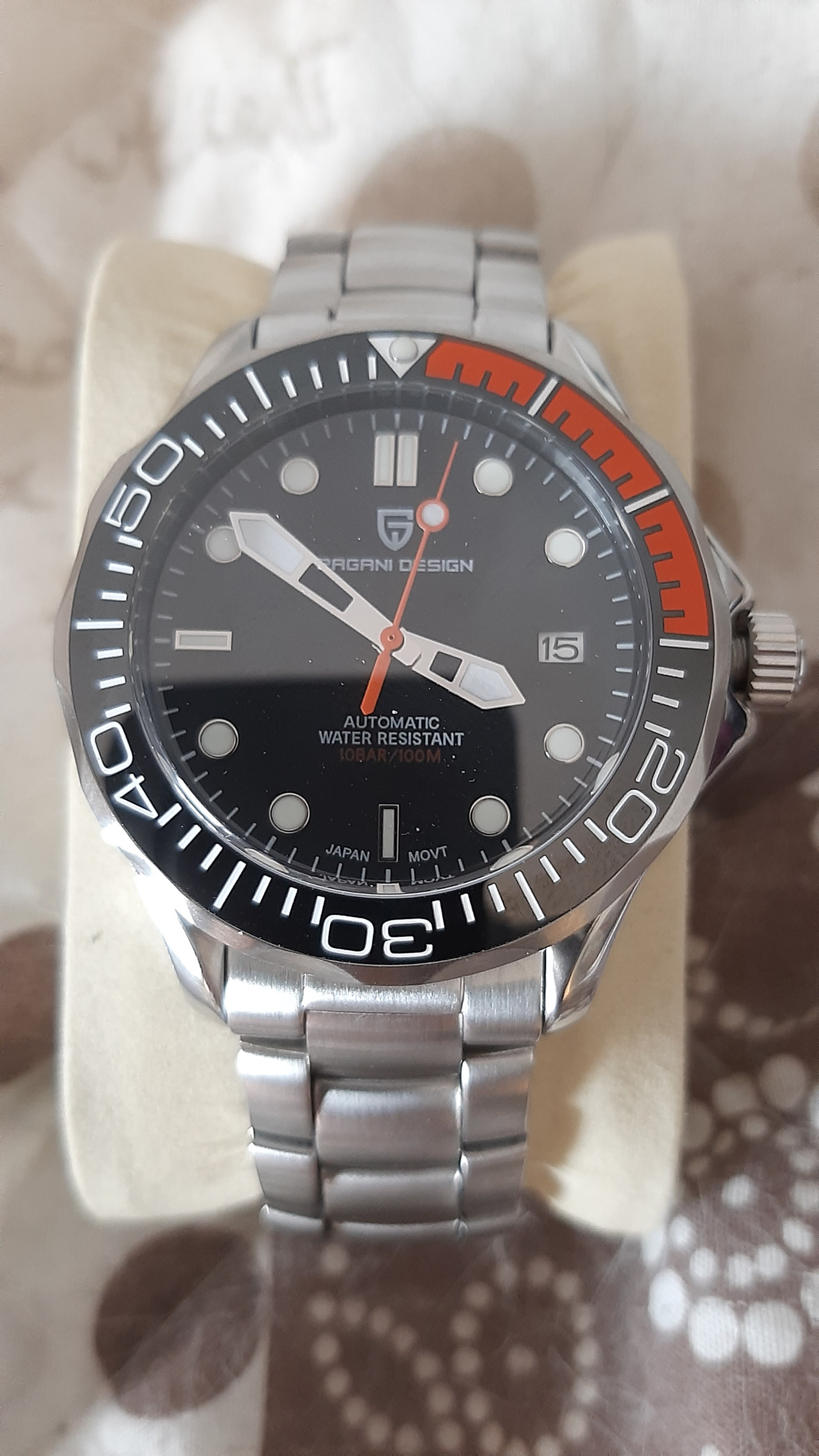 Man beachte: Die Uhr hat einen Gehäusedurchmesser von ca. 40mm, nicht (wie angegeben) 42mm!