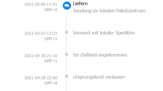 14 Apr. 2021 12:40 - 14 Apr. 2021 12:45Probier mal die Parcelsapp -> parcelsapp.com/en/tracking/