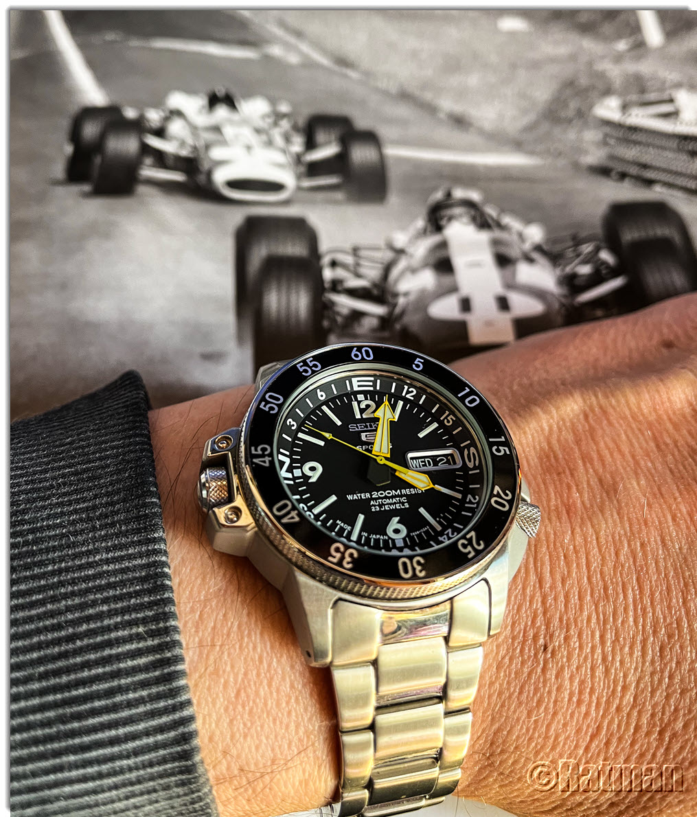 Oder die SEIKO SKZ211 "Atlas". Die hat zwar keine Kompass-Lünette, aber einen Innenring mit Kompass-Druck, welcher sich mit der linken Krone drehen lässt