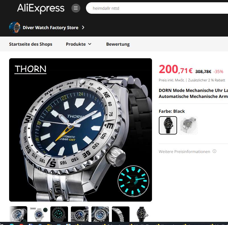 23 Jan. 2024 17:27 - 23 Jan. 2024 17:31Ist schon hart, wenn man so viele Uhren hat, daß man den Überblick verliert, oder?.Bisher habe ich aber selbst mit der Bildersuche bei AliExpress keine Uhr mit Kompass-Lünette gefunden.