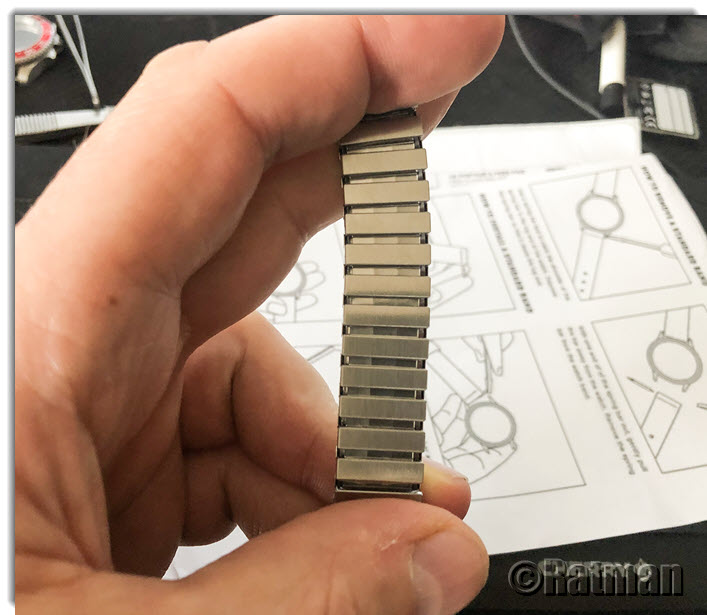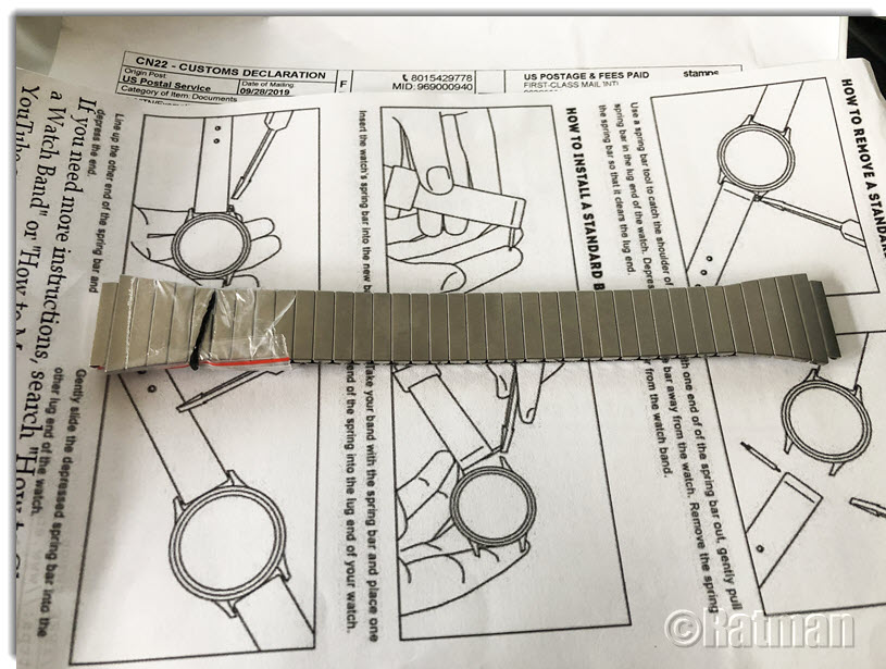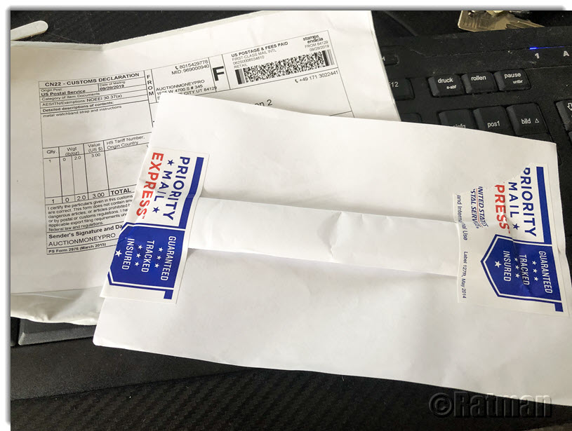 Und wie es der Zufall will, klingelt gerade ein Bote und übergibt mir einen kleinen Umschlag aus den Vereinigten Staaten. Darin ein Aftermarket-Armband für die kleine Timex Q im Flex-Style. Das wird zwar noch eine Weile in der Schublade schlummern, aber irgendwann darf es dann zum Einsatz kommen: