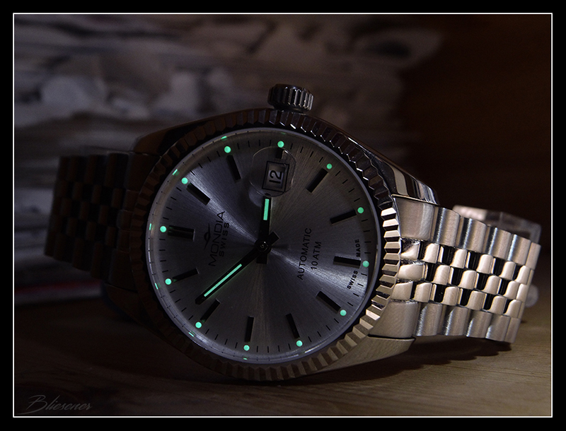 Die Uhr an sich ist sehr gut verarbeitet, hat einen schönen Sonnenschliff, 28800 bph finde ich schön . Die Lupe könnte etwas mehr vergrößern, die Endlinks sind solide, das Armband / die Schließe sind leicht klapperig, aber irgendwie hat das auch einen gewissen ”vintage Charme“