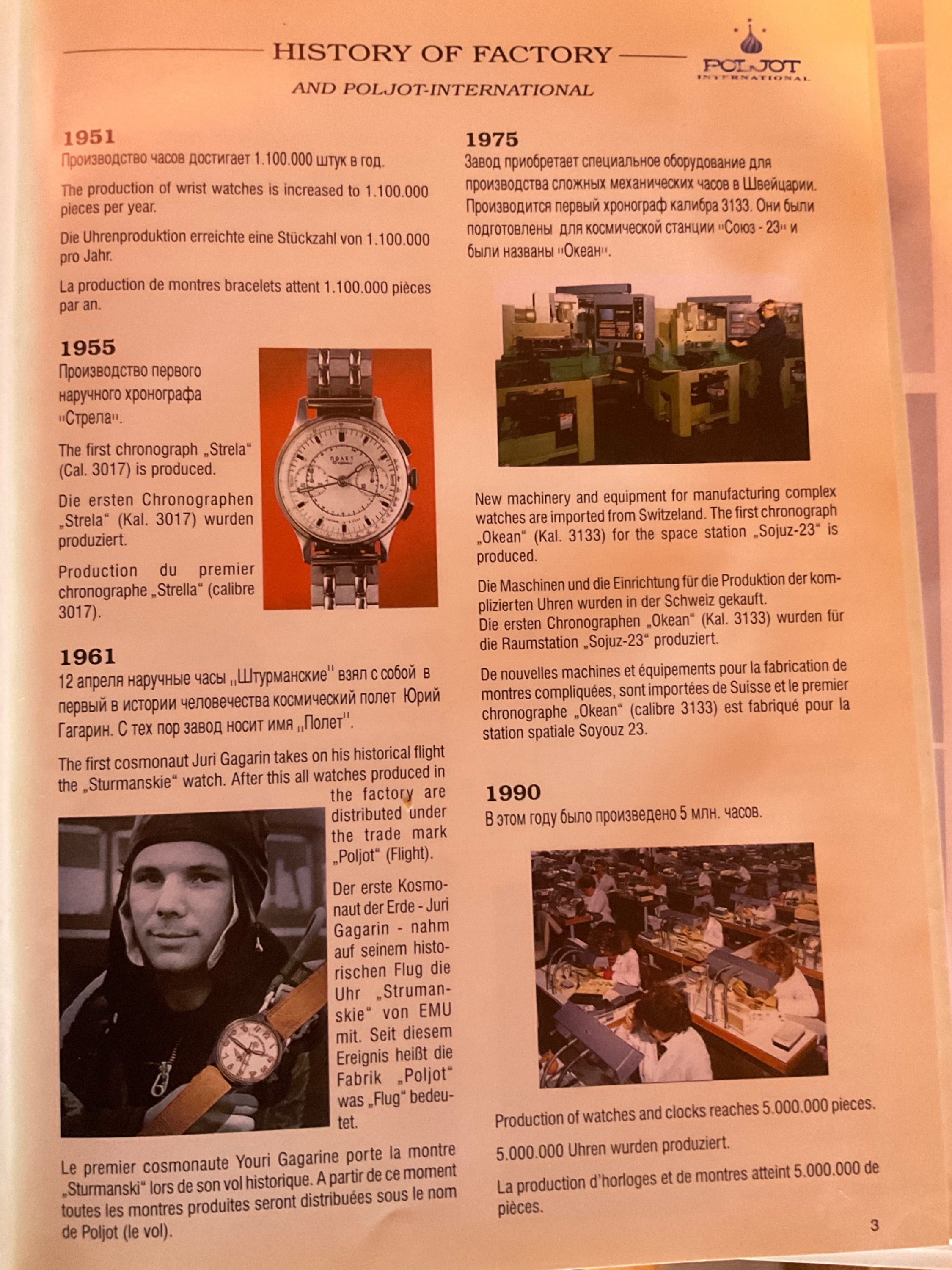Zu dieser Zeit wurde die Fabrik allerdings einfach "Zweite staatliche Uhrenfabrik" genannt. Erst in den 1960ern wurde sie zu Ehren des Kosmonauten Juri Gagarin in ВОСТОК umbenannt (kyrillisch für Wostok = Osten)