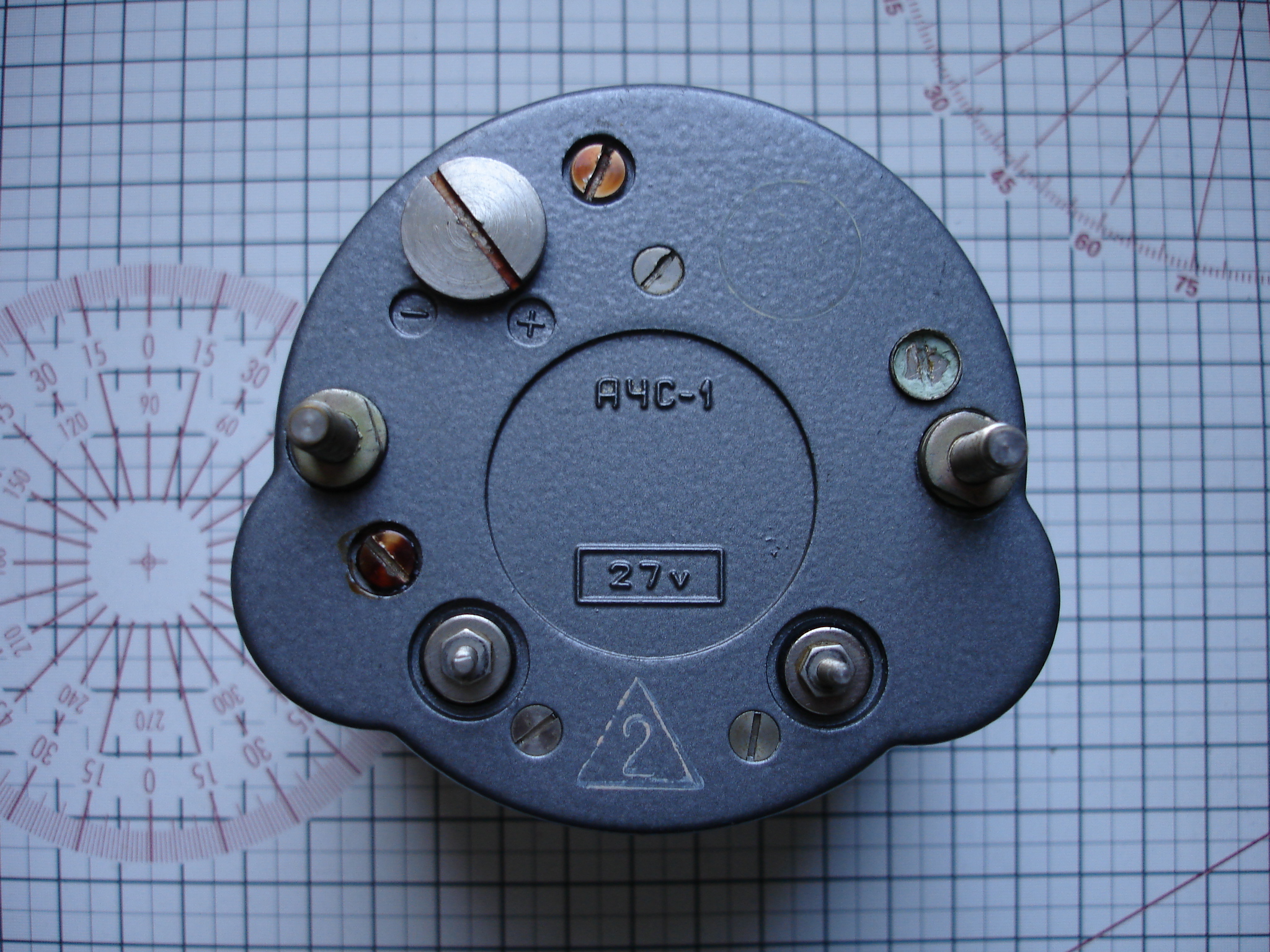 Ein Beispiel ist eine ТИП 1 aus Slatoust in einem Karbolit-Gehäuse von 1941 und einem Werk aus dem 2. Quartal 1943. Wie die Beschriftung auf dem verschraubten Rückdeckel zeigt, ist diese Uhr vorgesehen für eine Heizung mit einer Betriebsspannung von 26,5 Volt. Die Nenn-Spannung von 27 Volt (+/-2,7 Volt) ist typisch für Flugzeuge. Ich gehe weiter unten näher darauf ein.Diese TYP 1 aus Slatoust war also ganz offensichtlich für den Einsatz in einem Flugzeug vorgesehen.