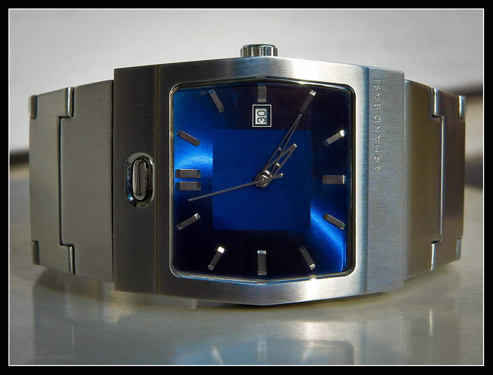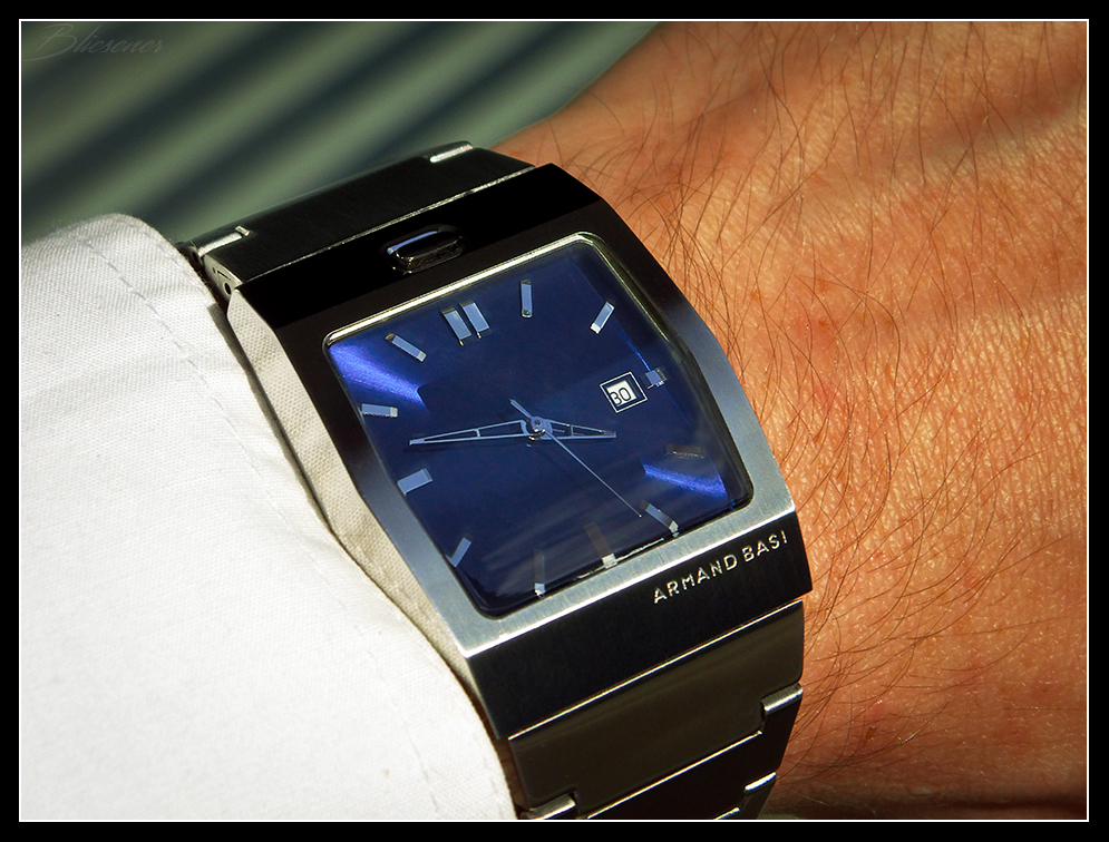 Wenn Du auf Uhren mit integrietem Armband stehst, dann "muß" ich doch mal meine Armand Basi A-0052G zeigen: