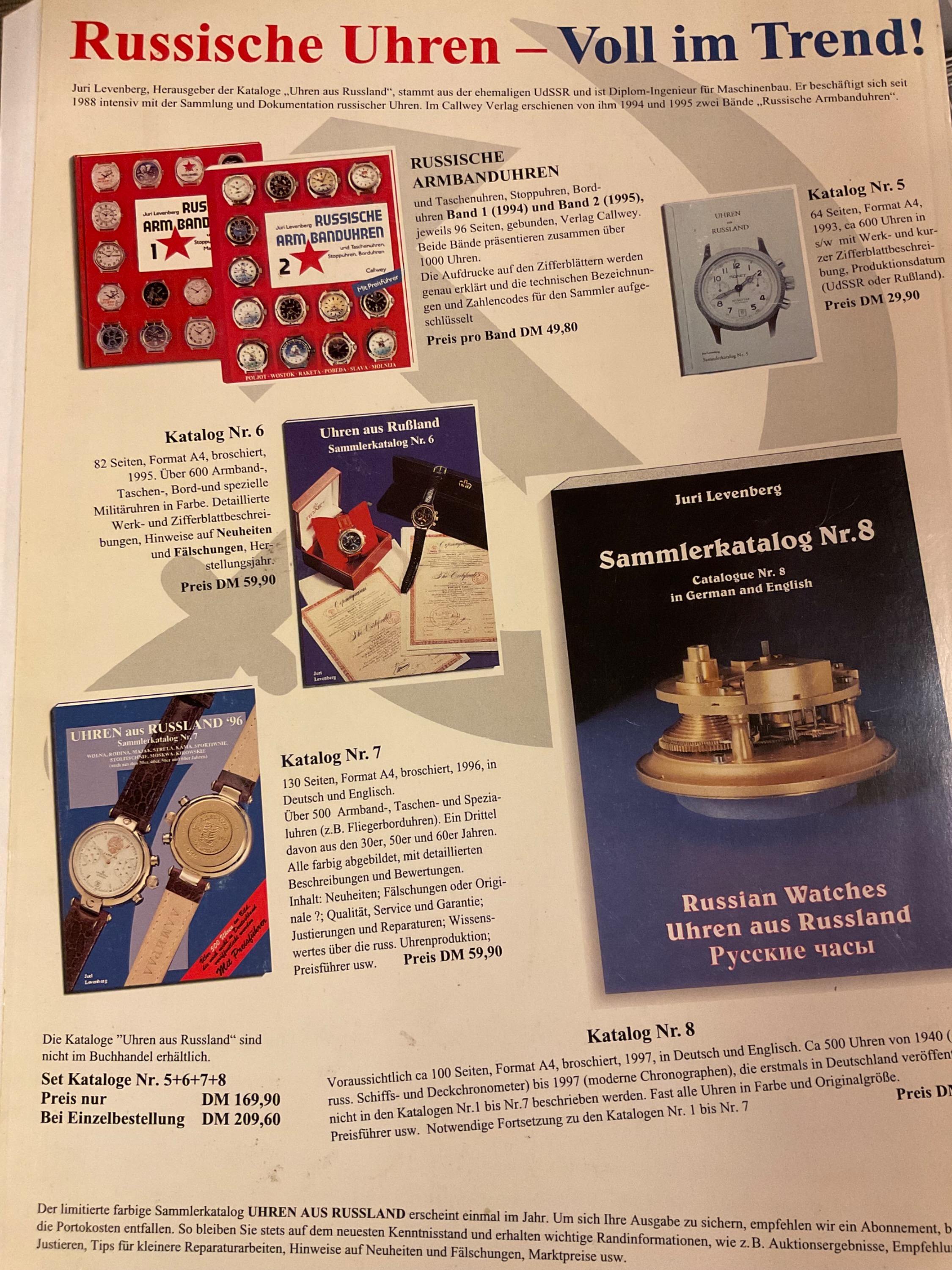 Außerdem gibt es die Sammlerkataloge "Russian Watches", von Juri Levenberg,