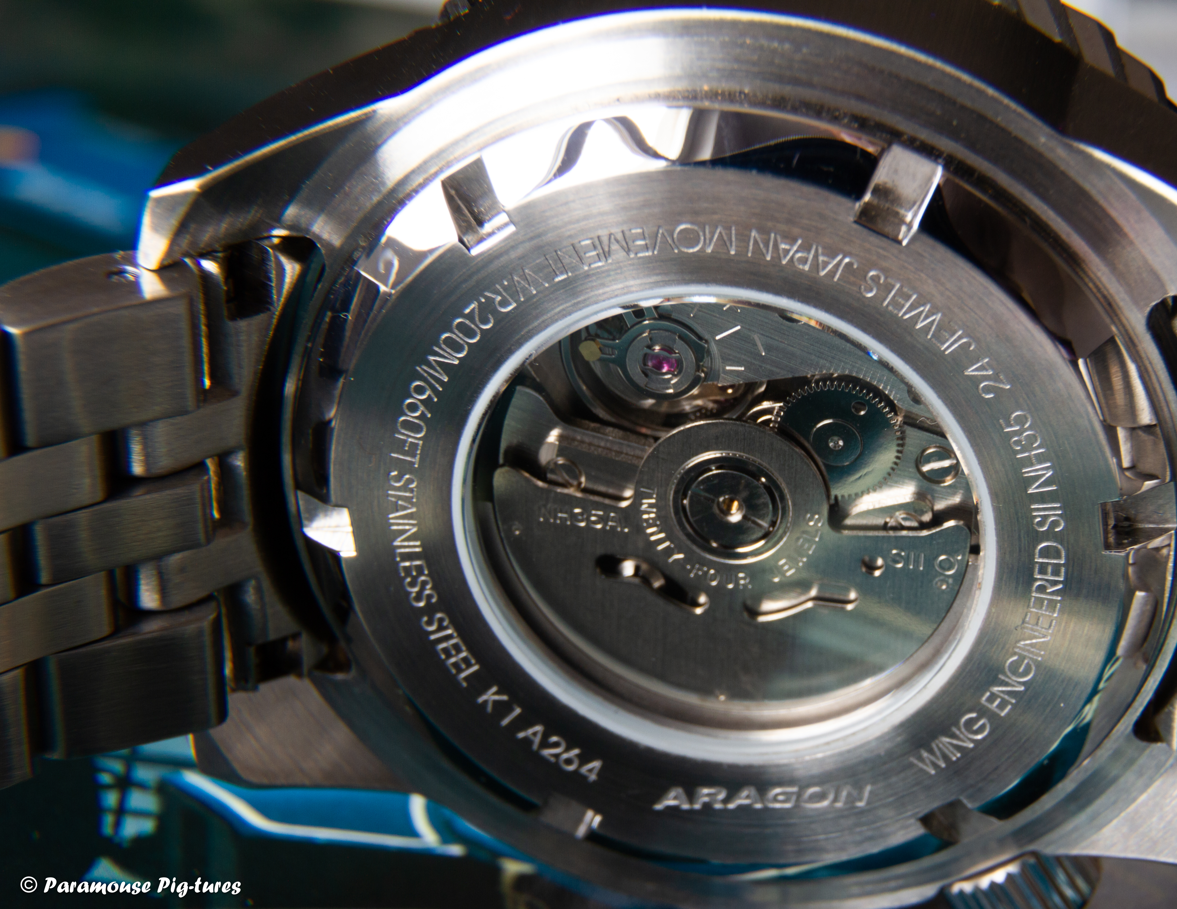 Angetrieben wird das Ührchen vom altbekannten SII NH35 Automatikwerk, welches auch hier gewohnt klaglos und zuverlässig seinen Dienst verrichtet