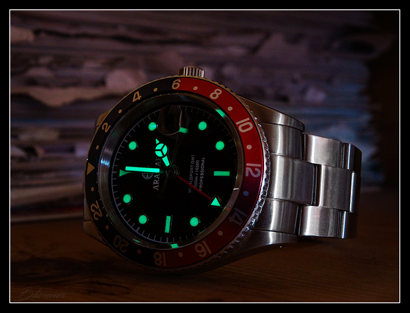 Ach ja, die Qualität der Lume kann ich doch etwas nach oben korrigieren, doch besser als nur "o.k.", hatte sie die Nacht am Arm und konnte am Morgen (zumindest in absoluter Dunkelheit und Augen, die sich an die Dunkelheit gewöhnt haben) die Uhrzeit noch ablesen. Schwach, aber noch erkennbar