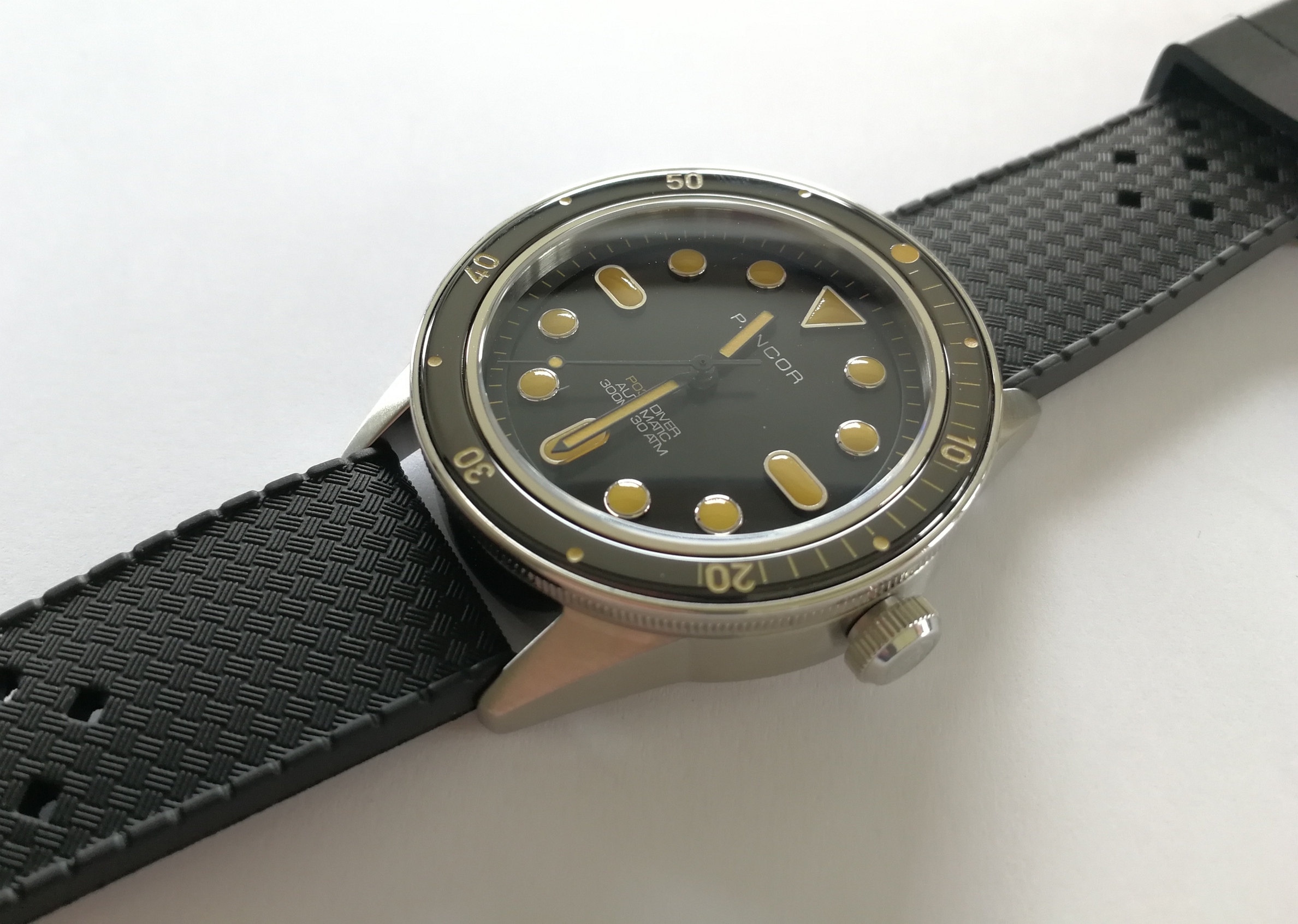 Da fängt das Lederband nicht zu schimmeln an in der Morgenfeuchte. Top. Falls doch tut es zur Not auch das Tropicband als Reserve. Beide sind im Einsatz brauchbar. Angstschweissunterwäsche nach versehentlicher Lünettenbewegung findet darin zur Not auch Platz.
