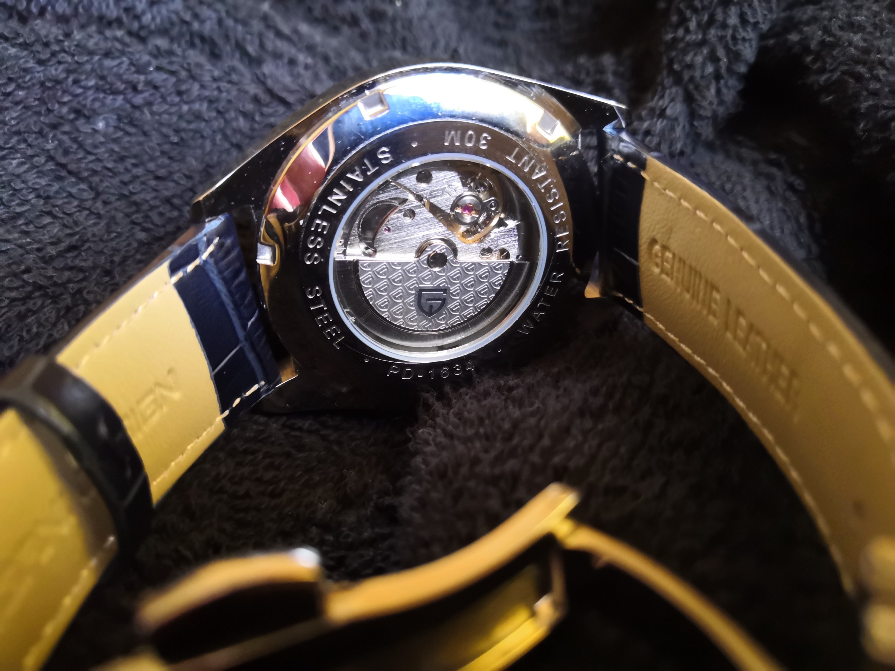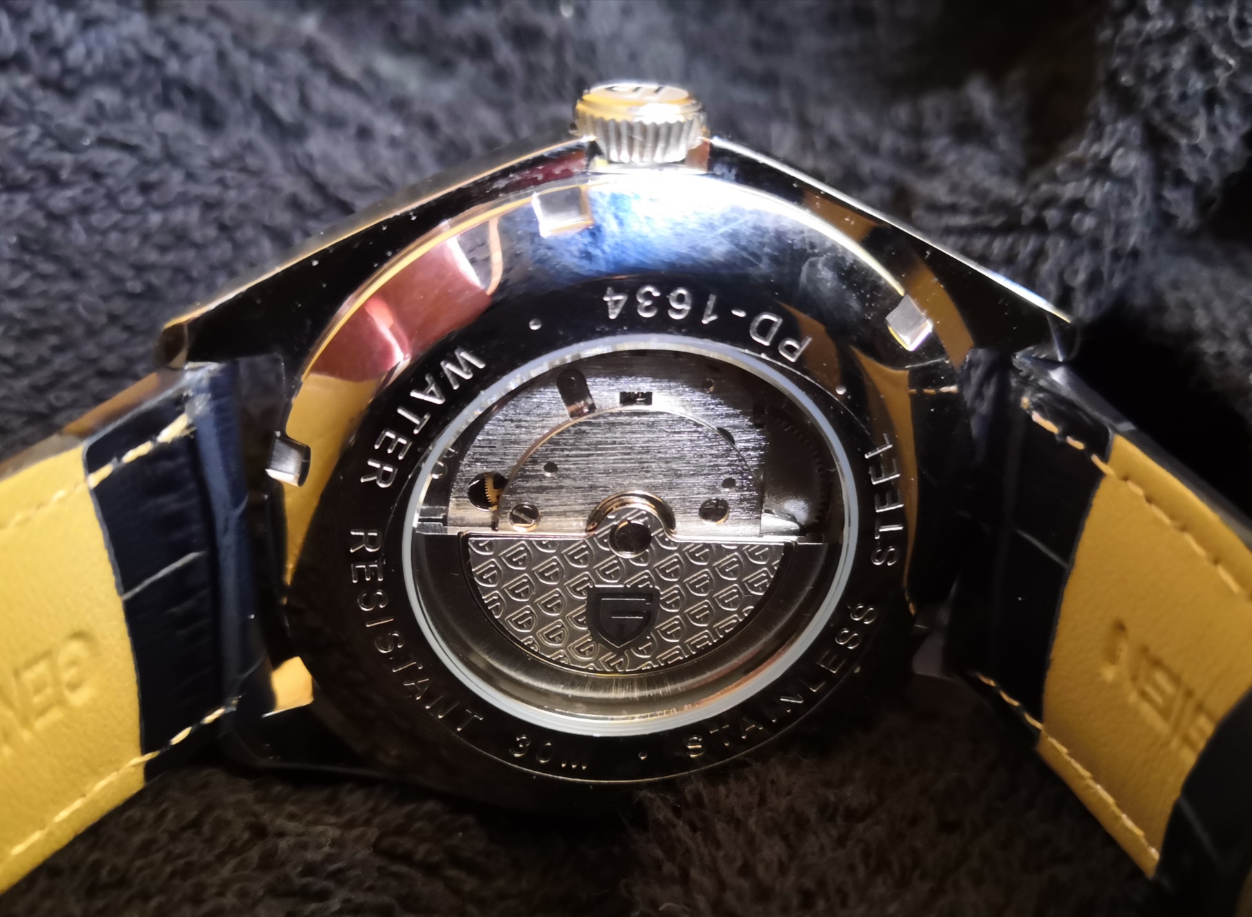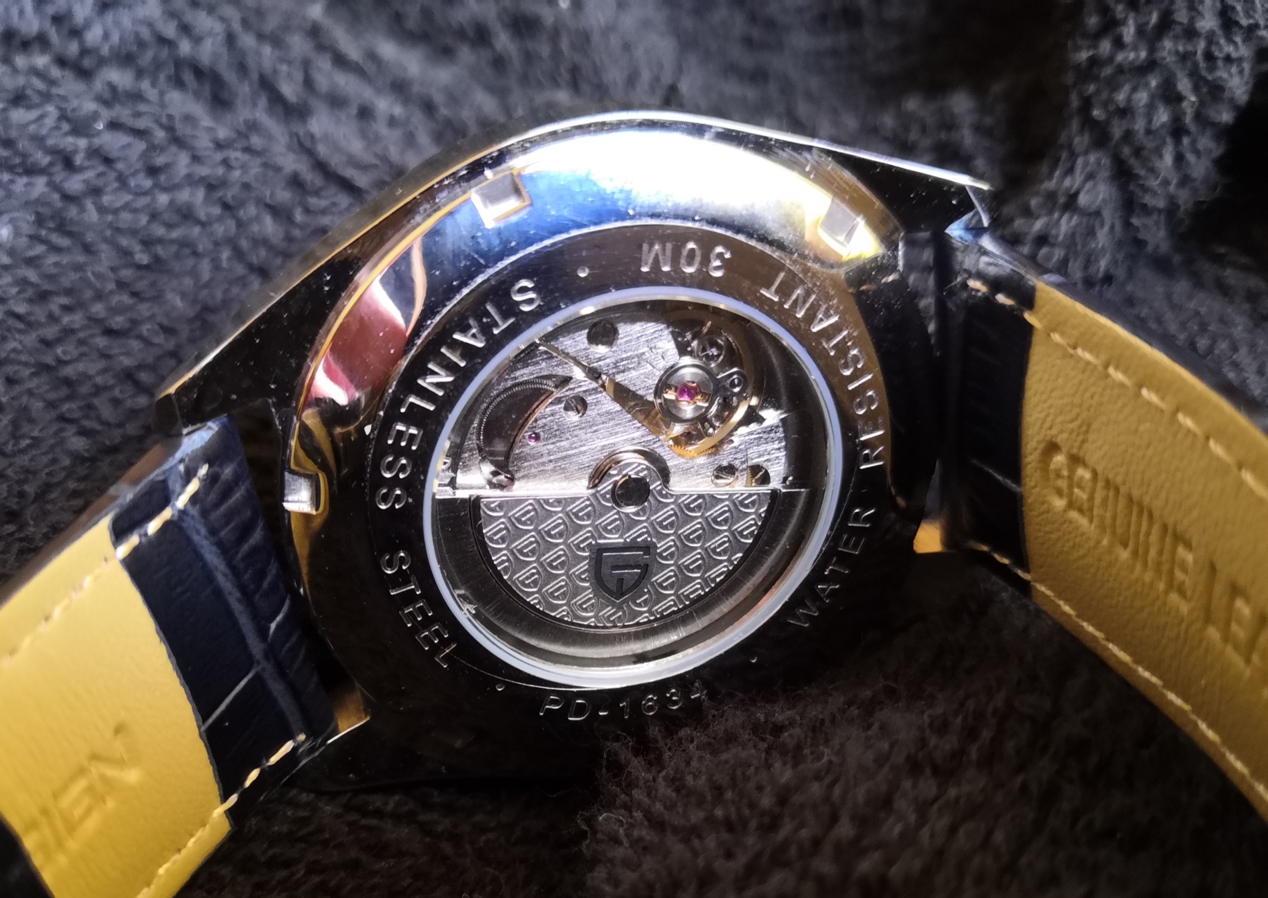 Soweit tatsächlich das bewährte Seagull 2813 verbaut ist, sollte man ruhig schlafen können, was die Haltbarkeit und Ganggenauigkeit dieses Kalibers angeht.