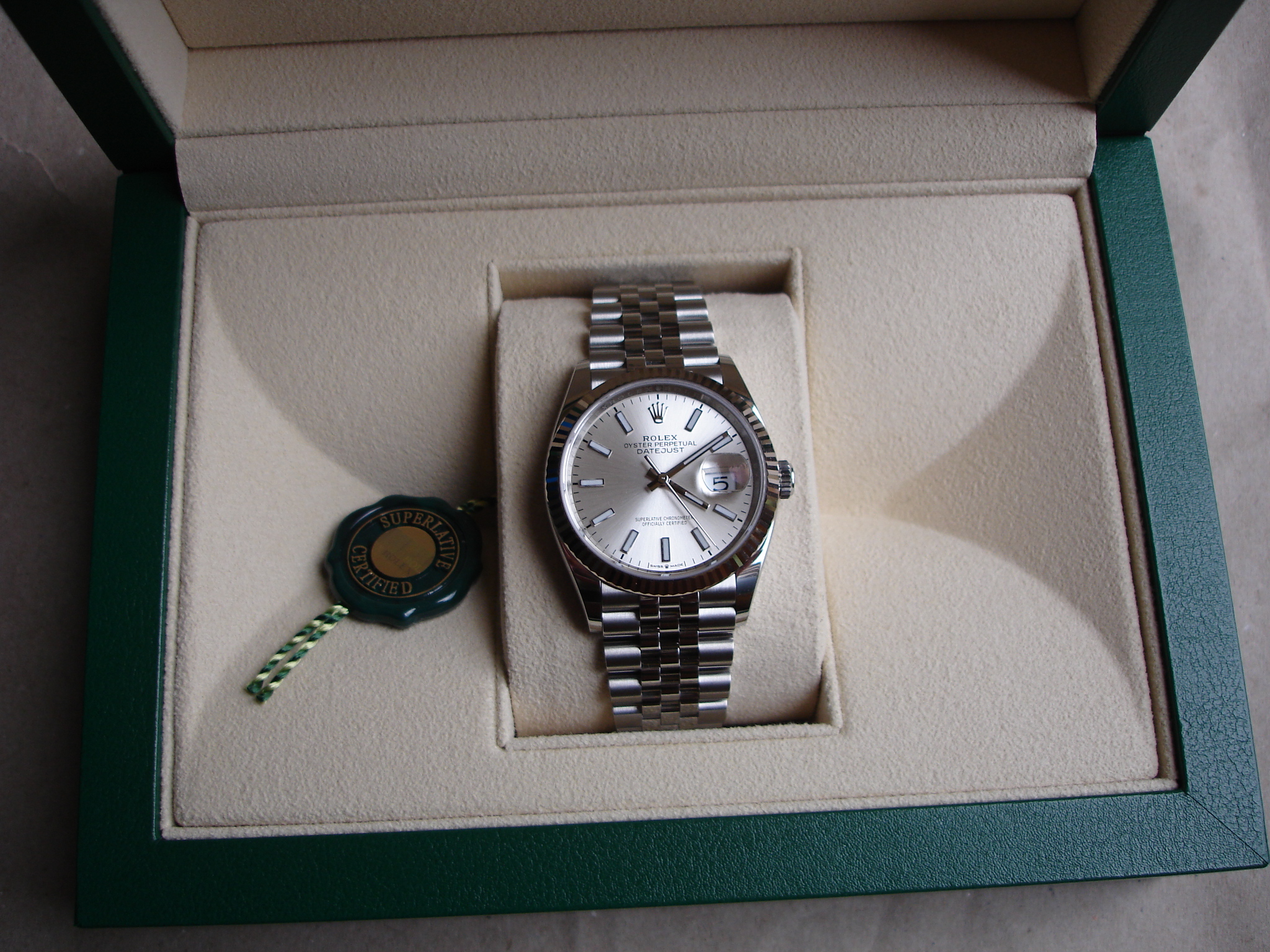 Es ist eine DATEJUST, Referenznummer 126234. Breite ohne Krone: 36 Millimeter.
