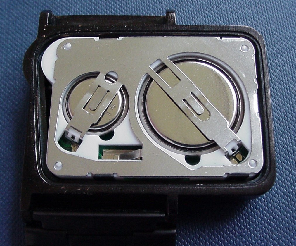 Die Abmessungen klingen nach einer monstermässig grossen Uhr. So wirkt die Uhr aber gar nicht, was an der schmalen Breite von 33 mm des parallelseitigen Corpus (ohne das asymmetrisch links daraus hervortretende Display) liegt, die sich direkt im Band fortsetzt.Das einreihige, gefaltete Edelstahl-Band ist leicht asymmetrisch: ganz gerade auf der rechten Seite, aber leicht verlaufend und damit schmäler zur Schliesse hin auf der linken Seite. An der kastenlosen Faltschließe mit seitlichen Drückern zum Öffnen gibt es keine Einstellmöglichkeit mit weiteren Löchern zur Feineinstellung der Länge und das Band kann an der Schliesse auch nicht getrennt werden (man muss also auf einer Seite die Uhr am Horn vom Band zu trennen, etwa zum Batteriewechseln). Die Länge kann man also nur durch das Entfernen von Bandgliedern anpassen, was ja oft zu unbefriedigenden Ergebnissen führt. Bei mir passt es aber hier sehr gut und die Uhr ist überhaupt bequem zu tragen, auch wenn sie vielleicht nicht so aussehen mag. Wie ich zu der Uhr kam? Als ich wieder einmal nach ihr und anderen Uhren googelte – eigentlich suchte ich eher nach Reviews, Forenbeiträgen oder Youtube-Videos – stolperte ich über eine Verkaufsanzeige in tutti.ch (das ist so ähnlich wie Ebay-Kleinanzeigen). Jemand bot sie an, nur ein paar Kilometer von Basel entfernt, wo ich als Schwabe im Exil wohne. Er habe sie neu gekauft, nicht oft getragen und, als die Batterie ausging, weggelegt. Ob sie noch funktioniert, wisse er nicht. Dementsprechend war sie günstig. Also hab ich es riskiert.Zuhause habe ich dann gleich gemerkt, dass die Geschichte so nicht ganz stimmen kann: Die Uhr enthält zwei verschiedene Batterien, eine grosse CR 2032 und eine kleinere CR 1220. Und obwohl für die grosse CR 2032 innen im Uhrboden angegeben ist «Minus up» (leider keine Angabe für die CR 1220), war die Batterie mit der Plusseite oben in den Batteriehalter eingelegt. So konnte die Uhr ja nun nie gelaufen sein. Auch die kleine CR 1220 war mit Plus oben eingelegt. Ich bin dann gleich nochmal los, ein paar Meter von mir gibt es ein Kaufhaus mit Uhren-Service-Center, wo man alle Batterietypen kaufen kann, und die prüfen die auch. Wie sich herausstellte, war die grosse Batterie noch voll geladen, die kleine aber leer. So hab ich nur die neu kaufen müssen. Zuhause hab ich aufs Geratewohl mal beide Batterien mit Minus oben eingelegt (man findet im Netz dazu keine Angaben, oder Fotos, die das klären), aber da beide Halter, abgesehen von der Grösse, genau gleich aussehen, schien mir das die richtige Lösung zu sein. Und siehe da: kaum war die zweite Batterie drin, sprang die Uhr an und konnte gestellt werden. Mein erstes Fazit: Da kann man nicht meckern. Der aufgepresste Edelstahl-Uhrenboden geht mit einer Messerklinge leicht ab und kann mühelos mit den Fingern später wieder aufgepresst werden.