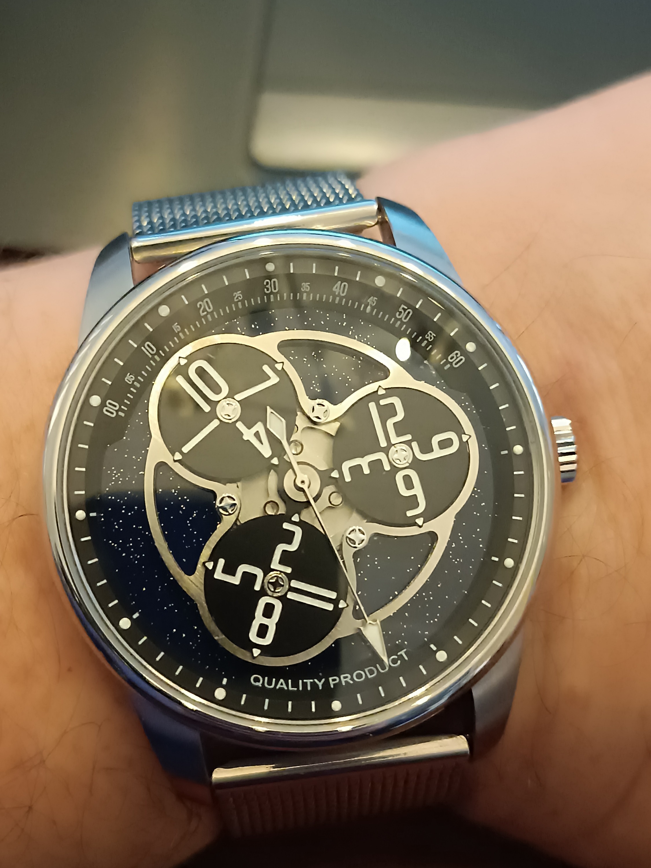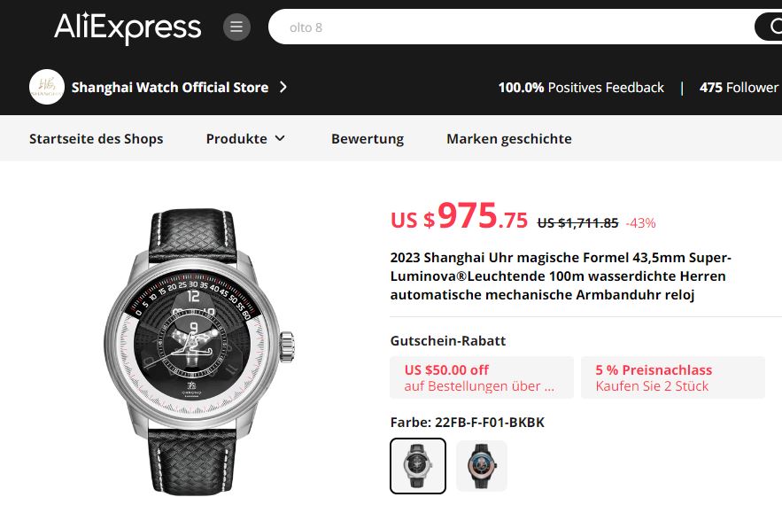 Glückwunsch zum "Quality Product". Die sieht ja wirklich super aus. Es gibt ein Angebot auf AliExpress für ca. 130 $. Da werde ich dann wohl auch nicht anders können, als die auch mal zu bestellen. Wie die Chinesen da auf die Idee kamen, aufs Zifferblatt "Quality Product" zu drucken, wird wohl immer ein Rätsel bleiben. Aber abgesehen davon gibt es beim Aussehen nichts zu meckern.