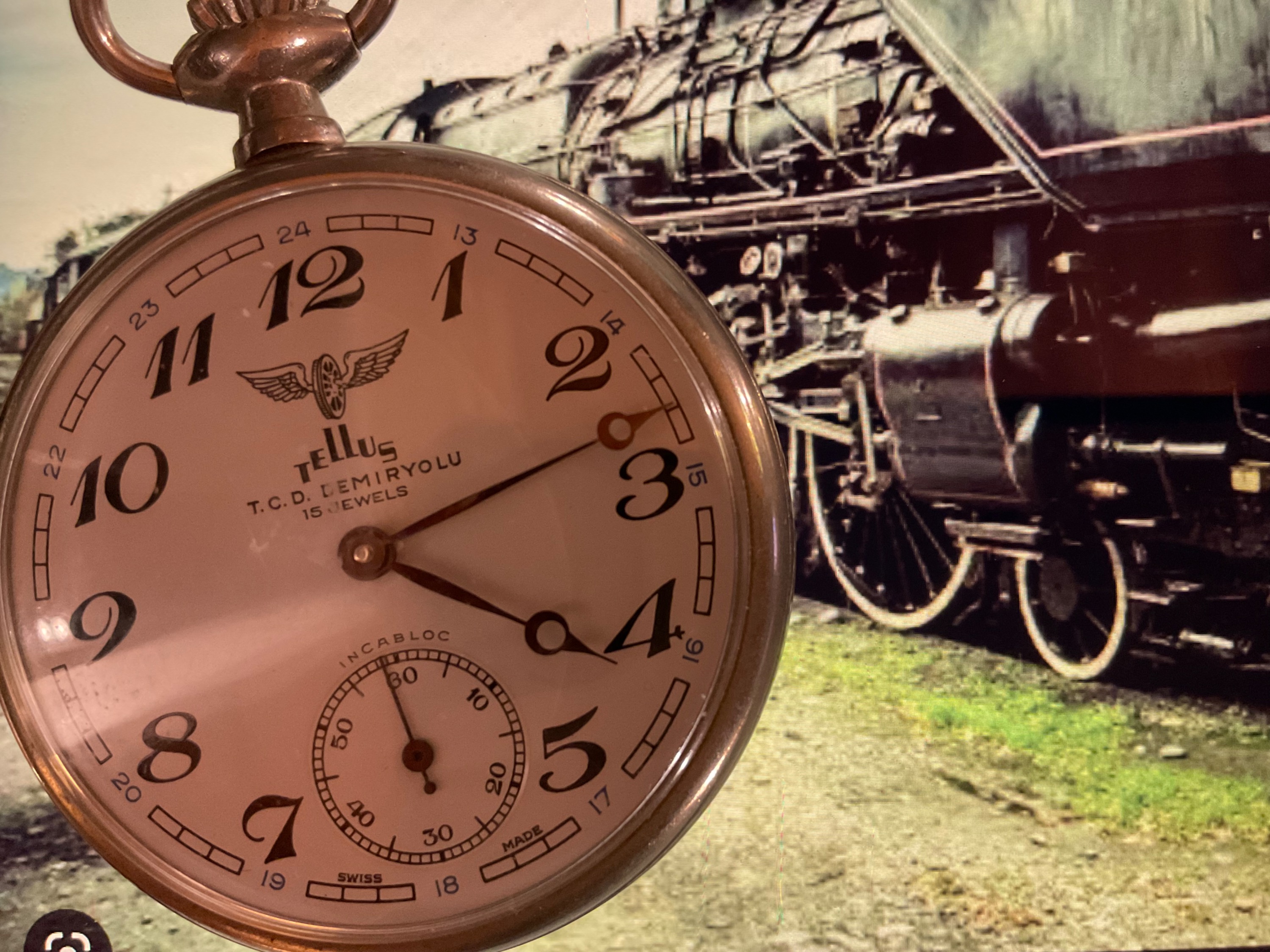 Ranfft gibt als Alter etwas 1960 an. So alt, eher noch etwas jünger, würde ich deine Uhr mit dem lackierten Metallzifferblatt, das aber wie ein Emaillezifferblatt aussehen soll, auch schätzen. Es gibt solche, sehr ähnliche Uhren mit diesem Werk und dem gleichen TCDD-Rückendeckel unter verschiedenen Marken, auch mit TCDD-Vermerk der türkischen Staatsbahn auf dem Zifferblatt. Wenn man googelt, findet man einige. Sie haben immer die TCDD, aber keine der anderen Bahnbetreiber auf der Orientlinie.