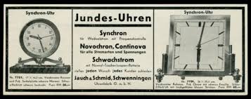 Durch diese Uhren, elektrisch, entsprechend der heutigen Spannung mit 220 Volt, mit schleichender Sekunde ist Jundes bekannt geworden.
