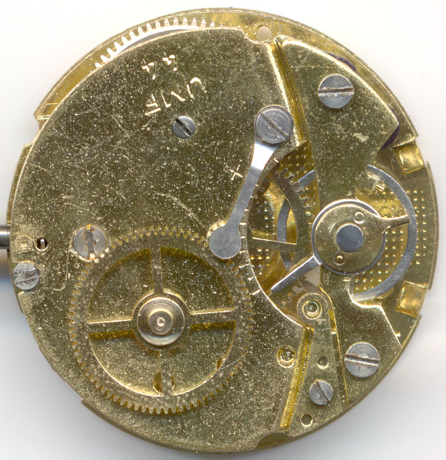 Das von dir abgebildete Werk, Paul, ist kein 'Saturn', sondern ein kleineres UMF 44 "Chronos" mit indirekter Zentralsekunde aus den 50er Jahren (UMF M 44, später UMF 54-32), das ein solches einfaches Stiftanker-Armbanduhrkaliber war. Es ist übrigens nicht vergoldet, sondern das ist gelb gebranntes (in Salpetersäure gekochtes) Messing.