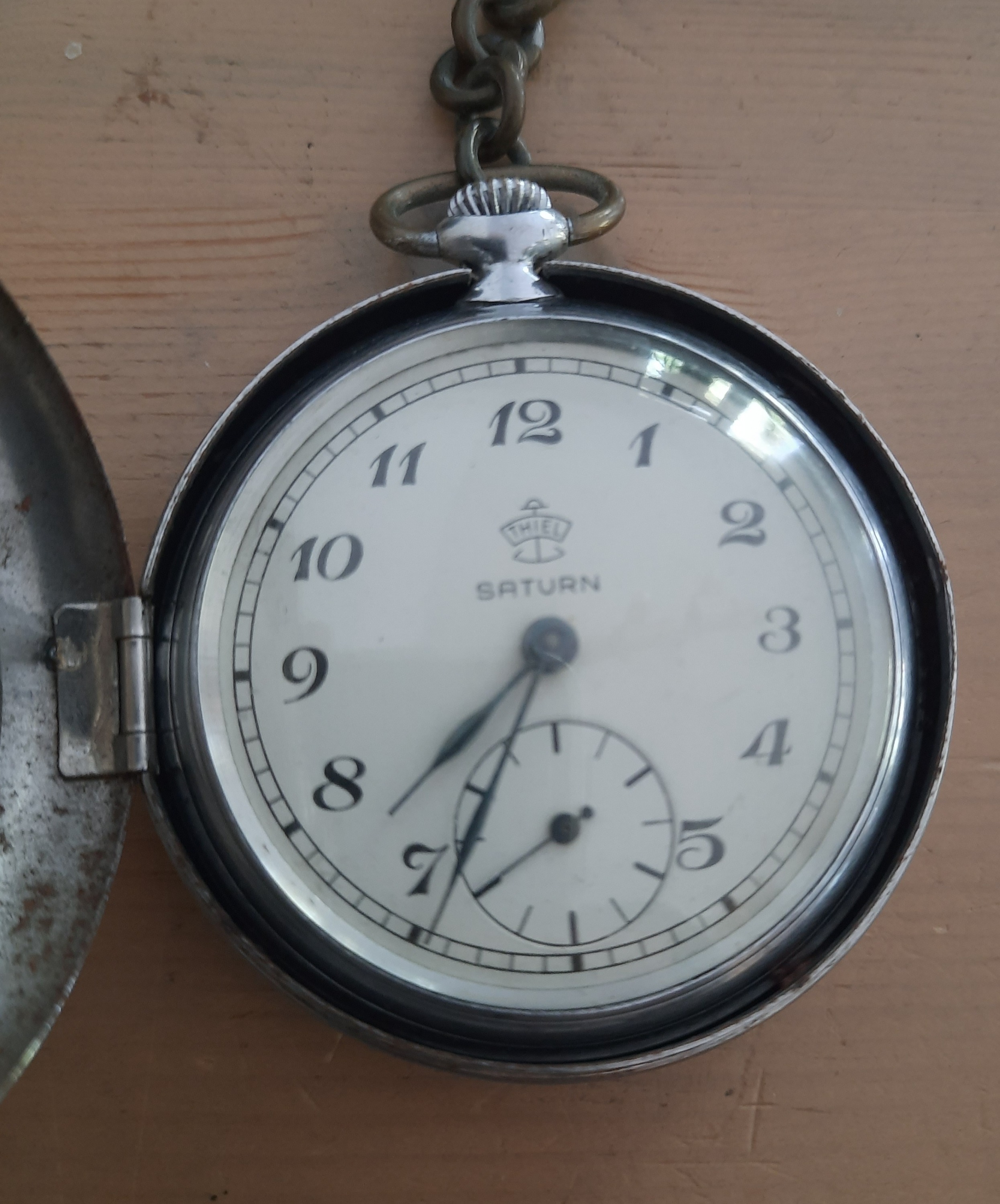 Das Saturn wurde schon von Thiel auf den Markt gebracht und in der Nachkriegszeit noch einige Jahre von der späteren UMF Ruhla weitergebaut, das ist eine von diesen Nachkriegsuhren aus den 50ern.