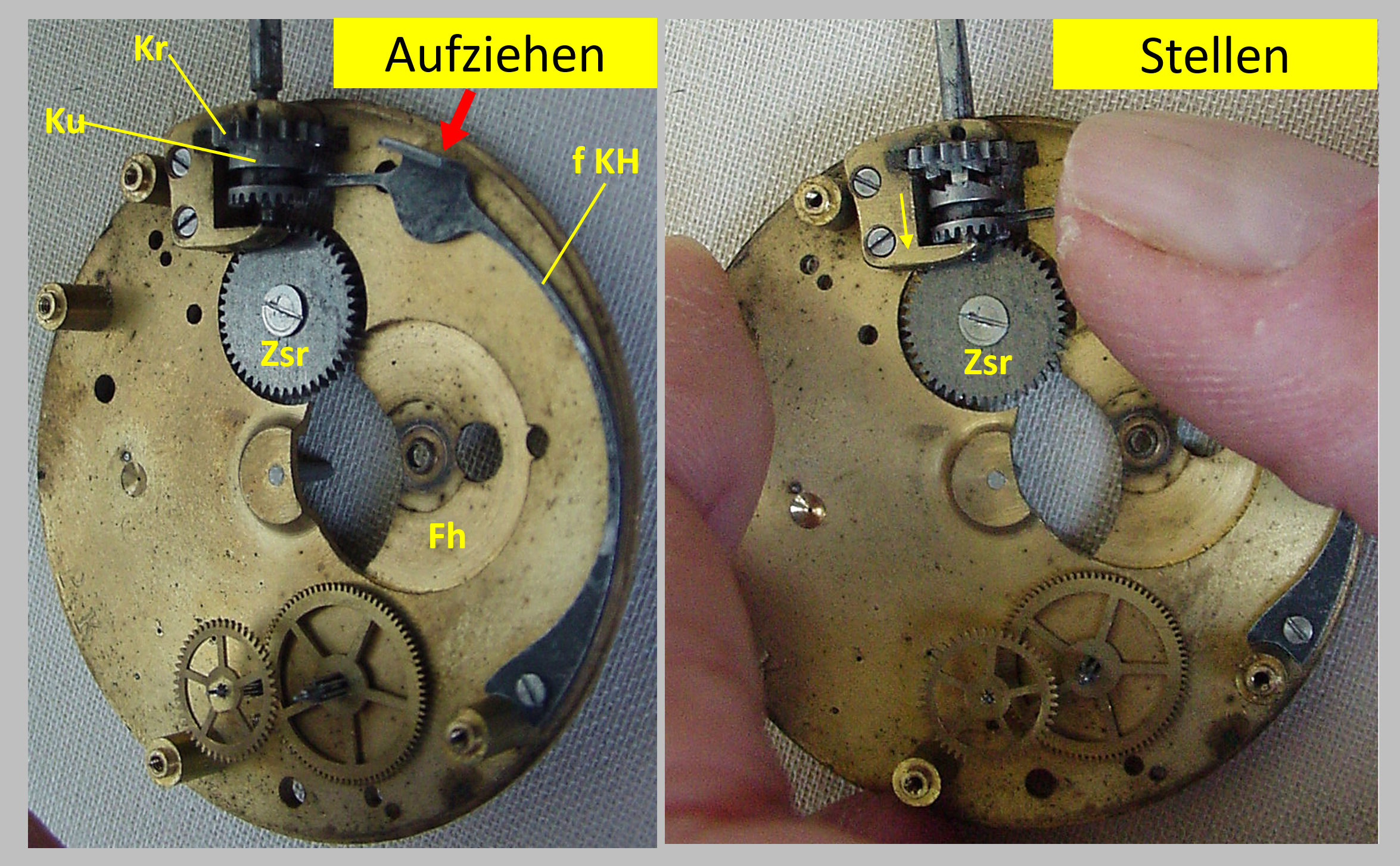 Fh: Federhaus (Vertiefung und Ausschnitt in der Platine für das Doppeltrieb zum Zeigerantrieb)