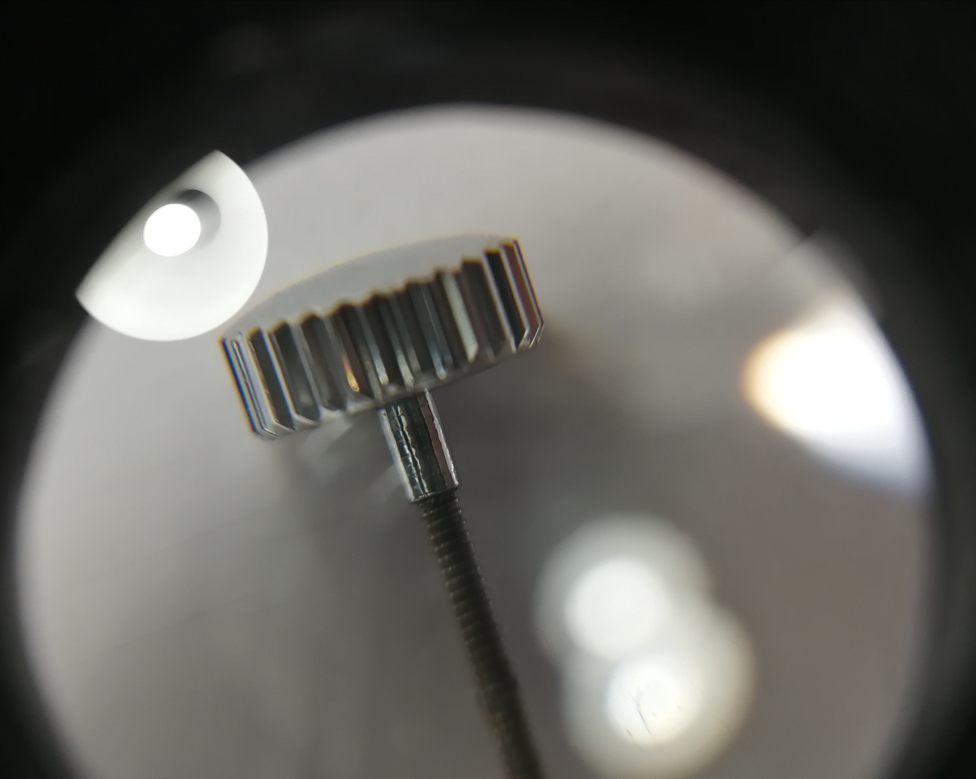 So, nun sitzt zwar die richtige (Miyota)Welle auf der zum Case passenden Krone, aber leider stellt sich nun heraus, dass die Welle zu kurz ist. Das Gewinde des RLX-Case steht ungefähr einen knappen Millimeter weiter heraus als beim Parnis-Case. Dadurch bekomme ich die Welle zwar knapp so weit reingeschoben, dass sie einrastet, jedoch nicht weit genug, um die Uhr aufziehen zu können. Sie verbleibt quasi in der Position zur Datumsverstellung.