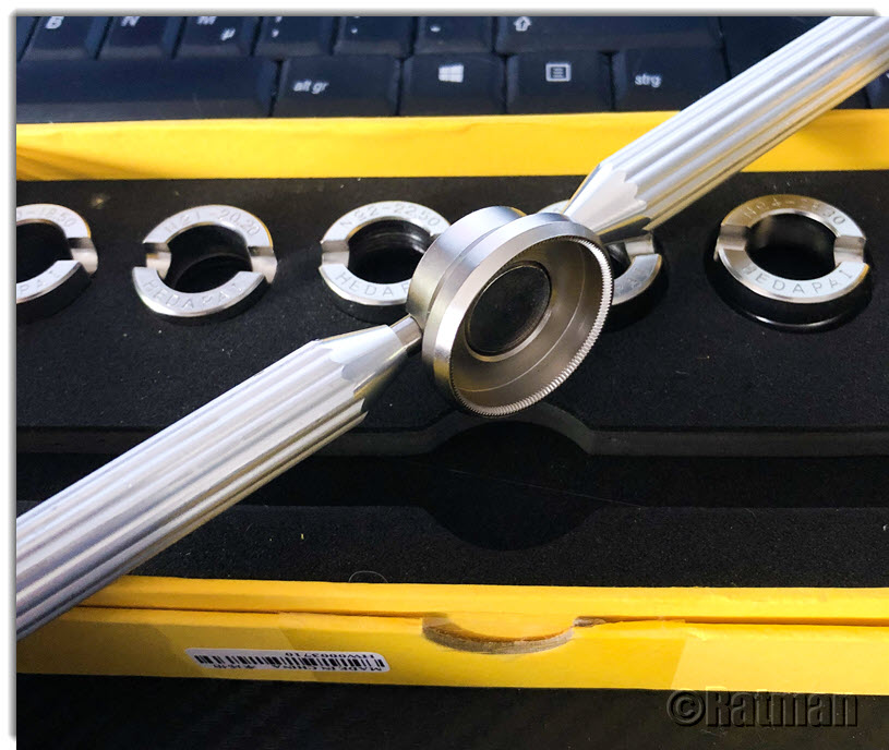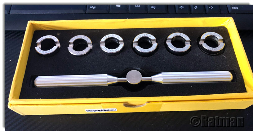 Da ich mittlerweile doch einige Uhren mit diesen Rolex/Tudor Riffel-Deckeln mein Eigen nenne, habe ich mir jetzt mal ein passendes Werkzeug dafür gegönnt. Das alternative Öffnen mit einem dieser Gummibälle ist ja eher Glückssache und funktioniert meist nur, wenn der Deckel nicht allzu fest sitzt.