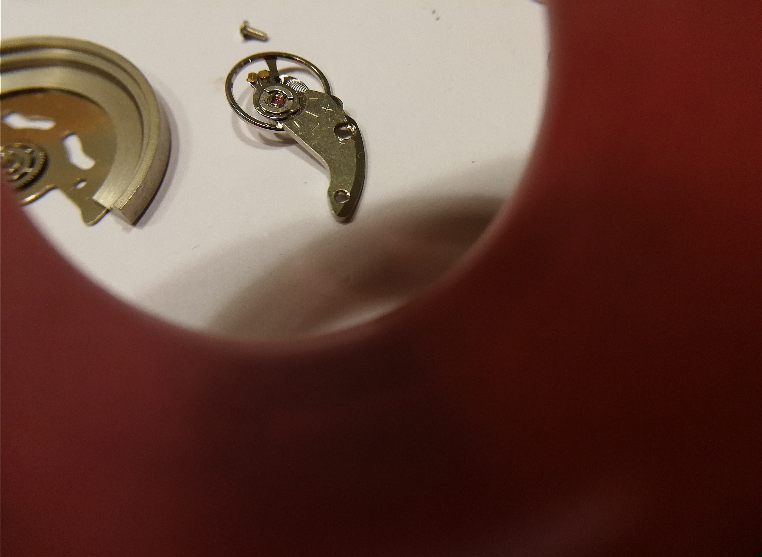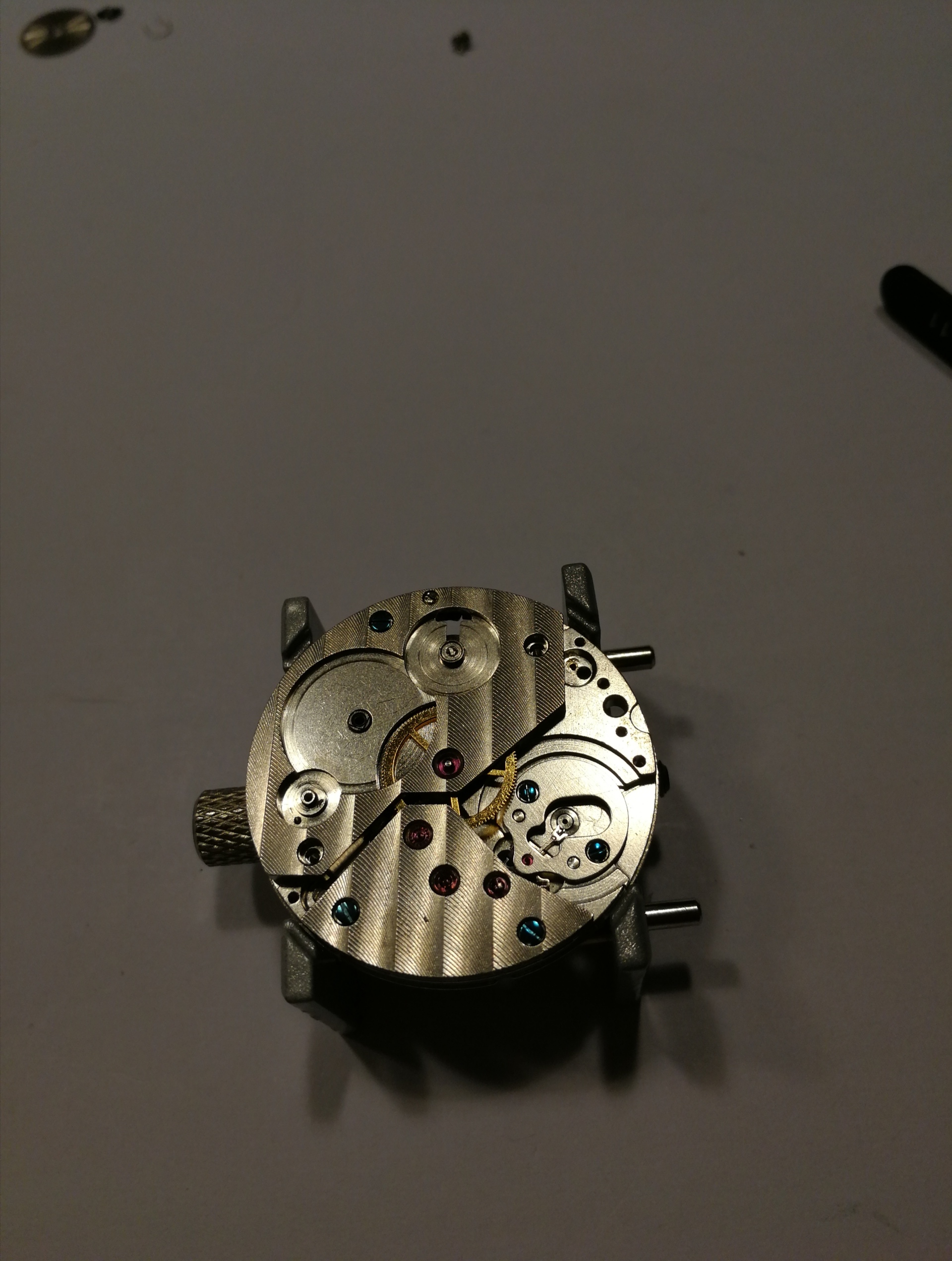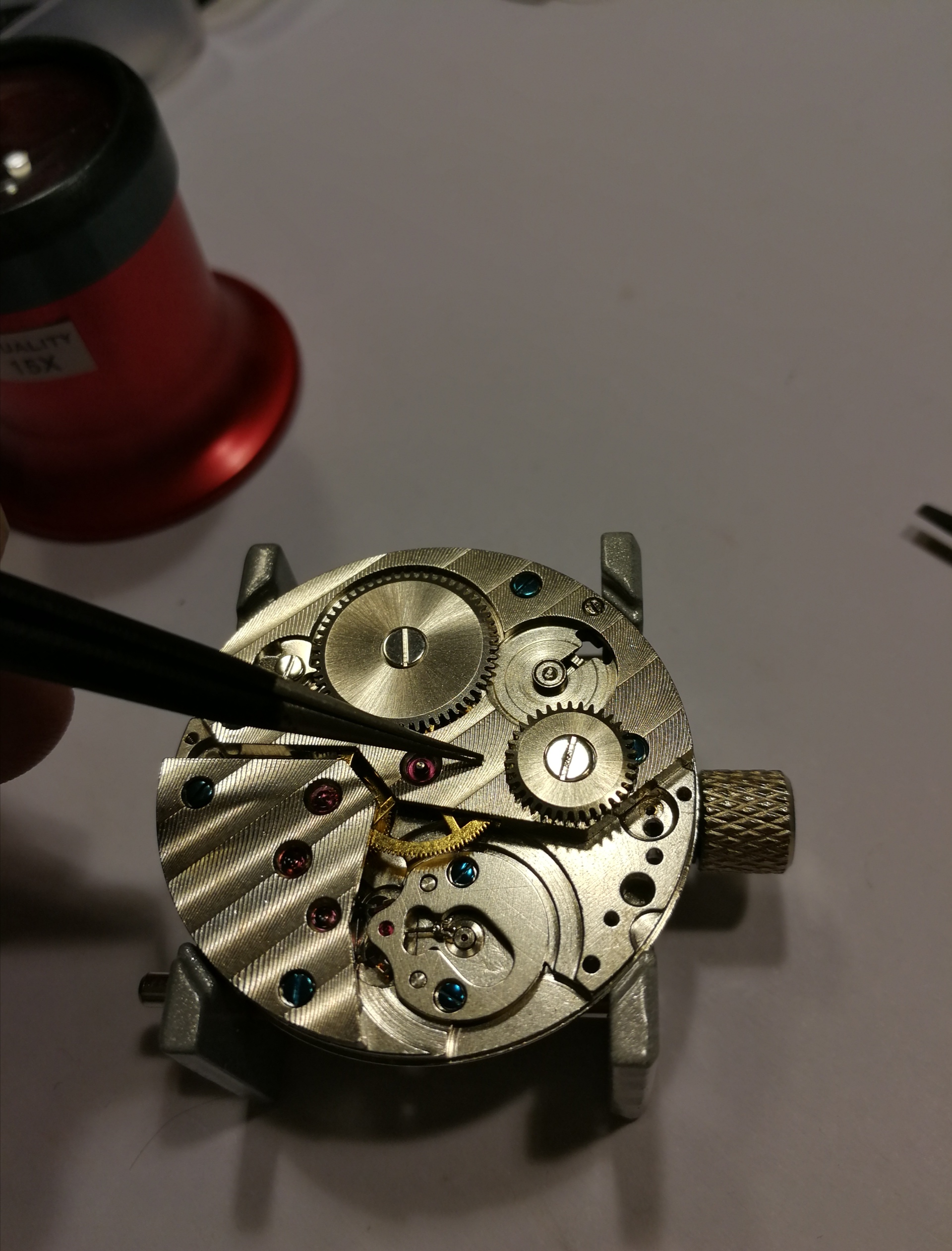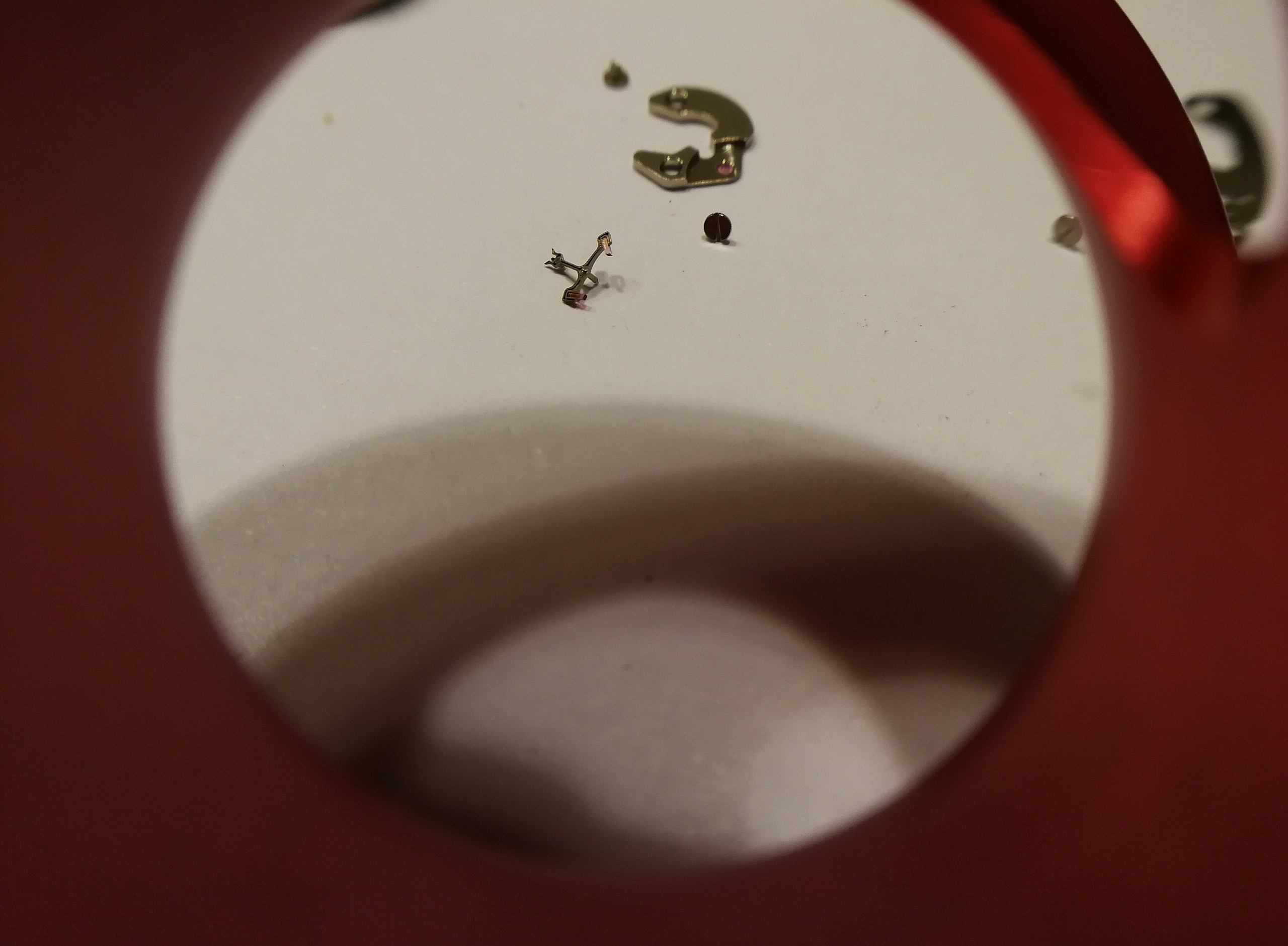 Ergänzend war noch das Problem, dass mein Werk extrem verklebt war, meine Theorie: Es hat sich jemand daran bereits versucht und viel zu viel und ein falsches Schmiermittel genommen. Man will mit der Pinzette ein Teil nehmen, drei hängen aber zusammen.