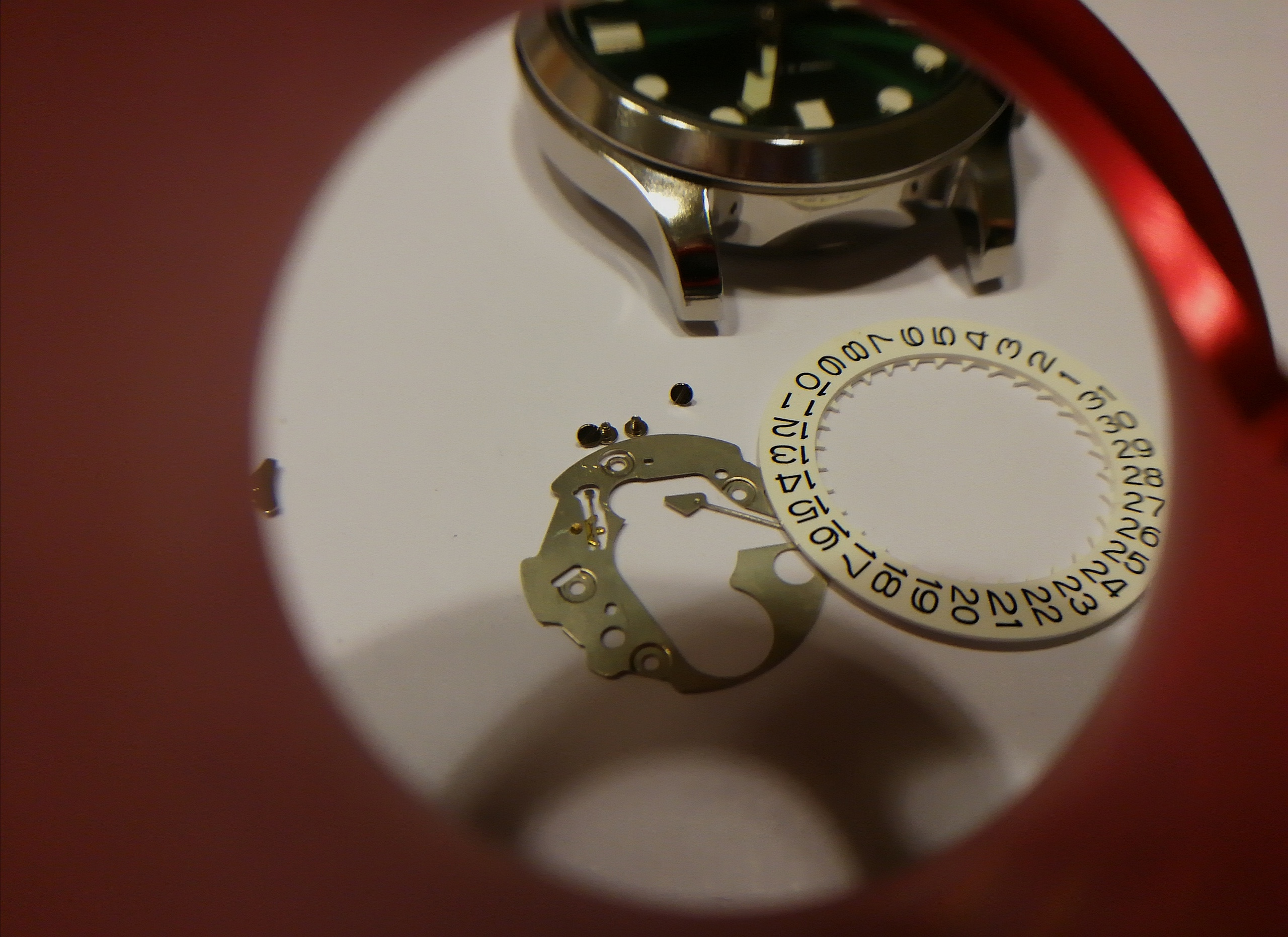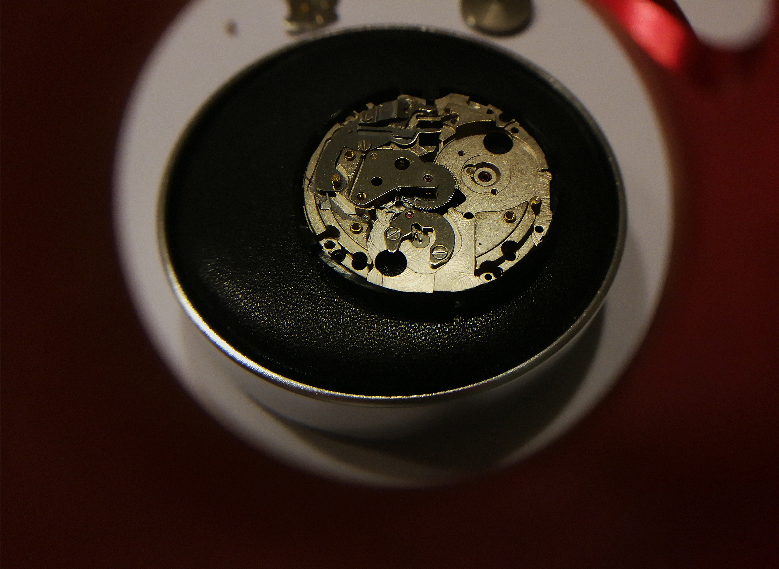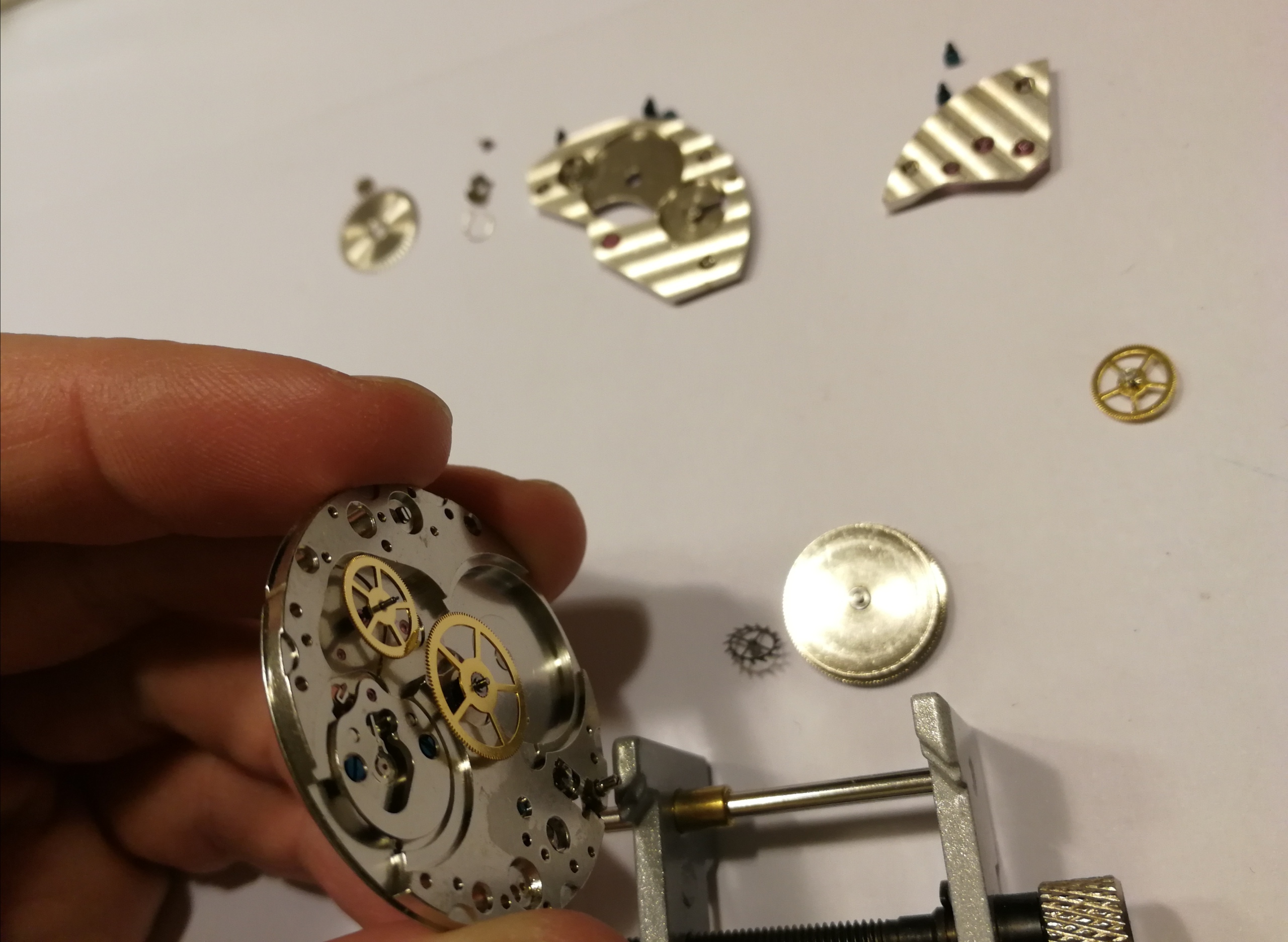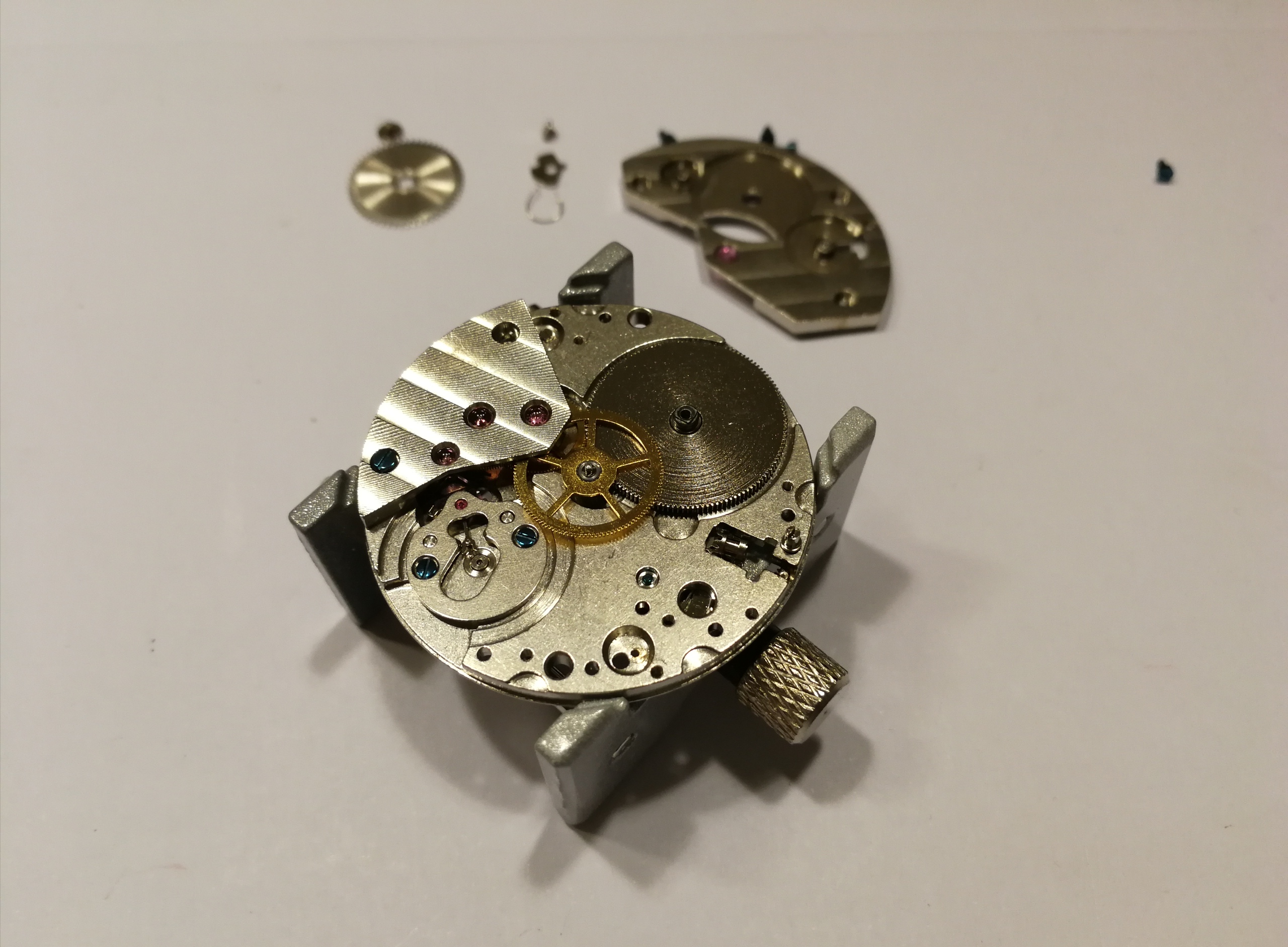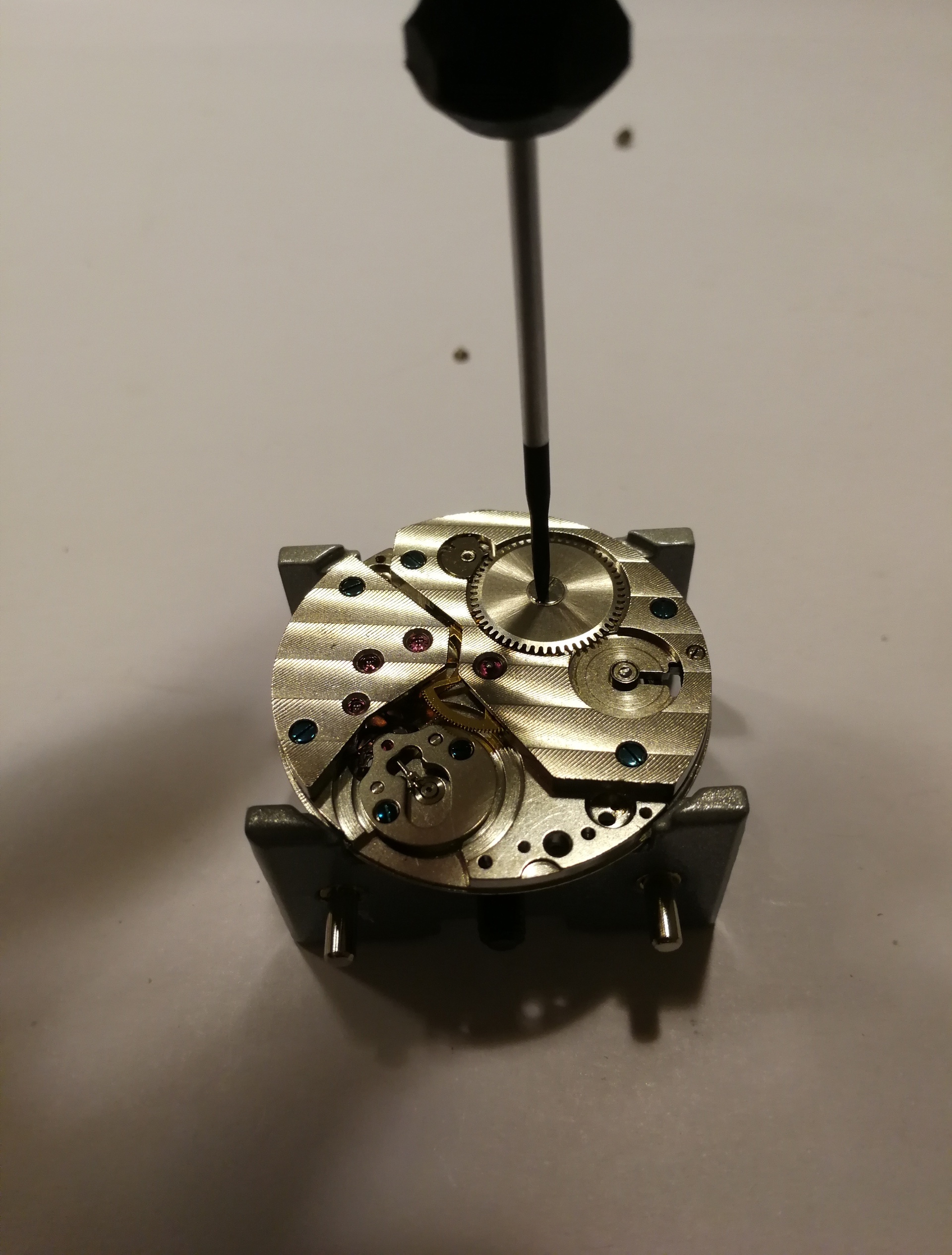 Ergänzend war noch das Problem, dass mein Werk extrem verklebt war, meine Theorie: Es hat sich jemand daran bereits versucht und viel zu viel und ein falsches Schmiermittel genommen. Man will mit der Pinzette ein Teil nehmen, drei hängen aber zusammen.