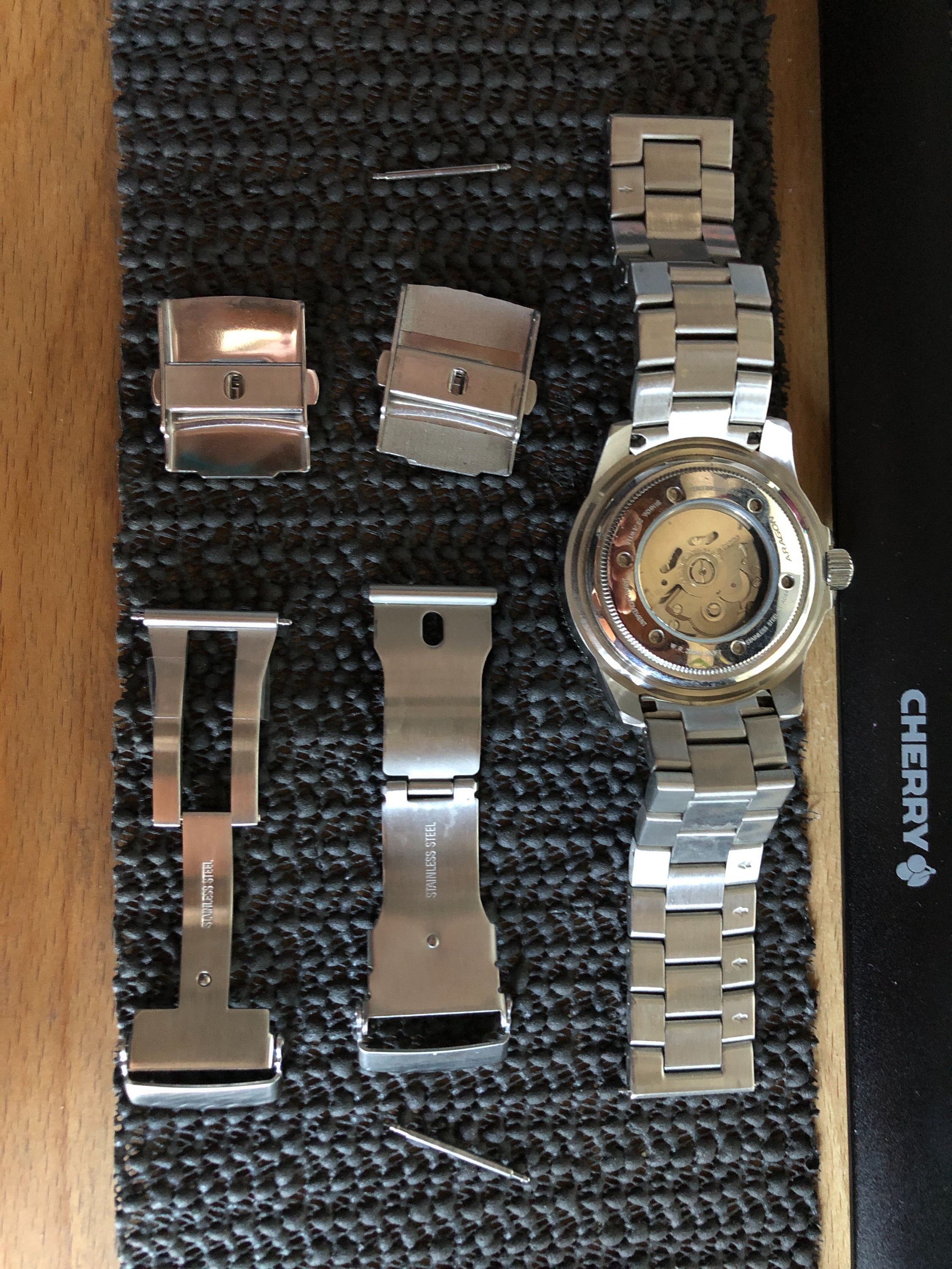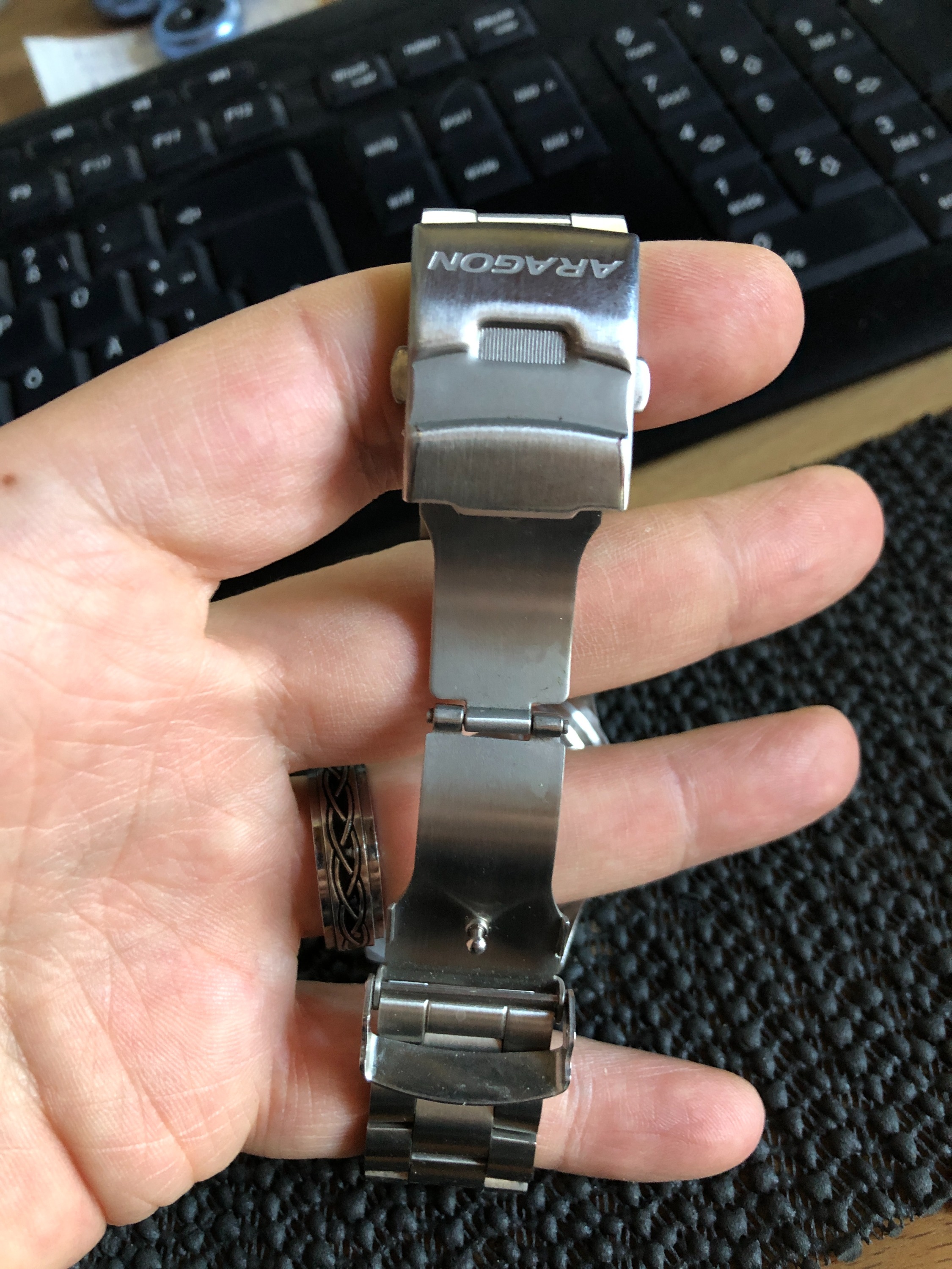 Wie ihr bestimmt wisst besitze ich mehrere Uhren von ARAGON. Während diese für ihre massive Bauweise bekannt sind, verwendet der Hersteller standardmäßig vergleichsweise schlichte Schließen aus gefaltetem Blech. Man bekommt zwar auch massive Schließen von Aragon, jedoch werden die beim Uhrenkauf nicht als Option angeboten und sie sind mit $38,- nicht gerade preiswert.