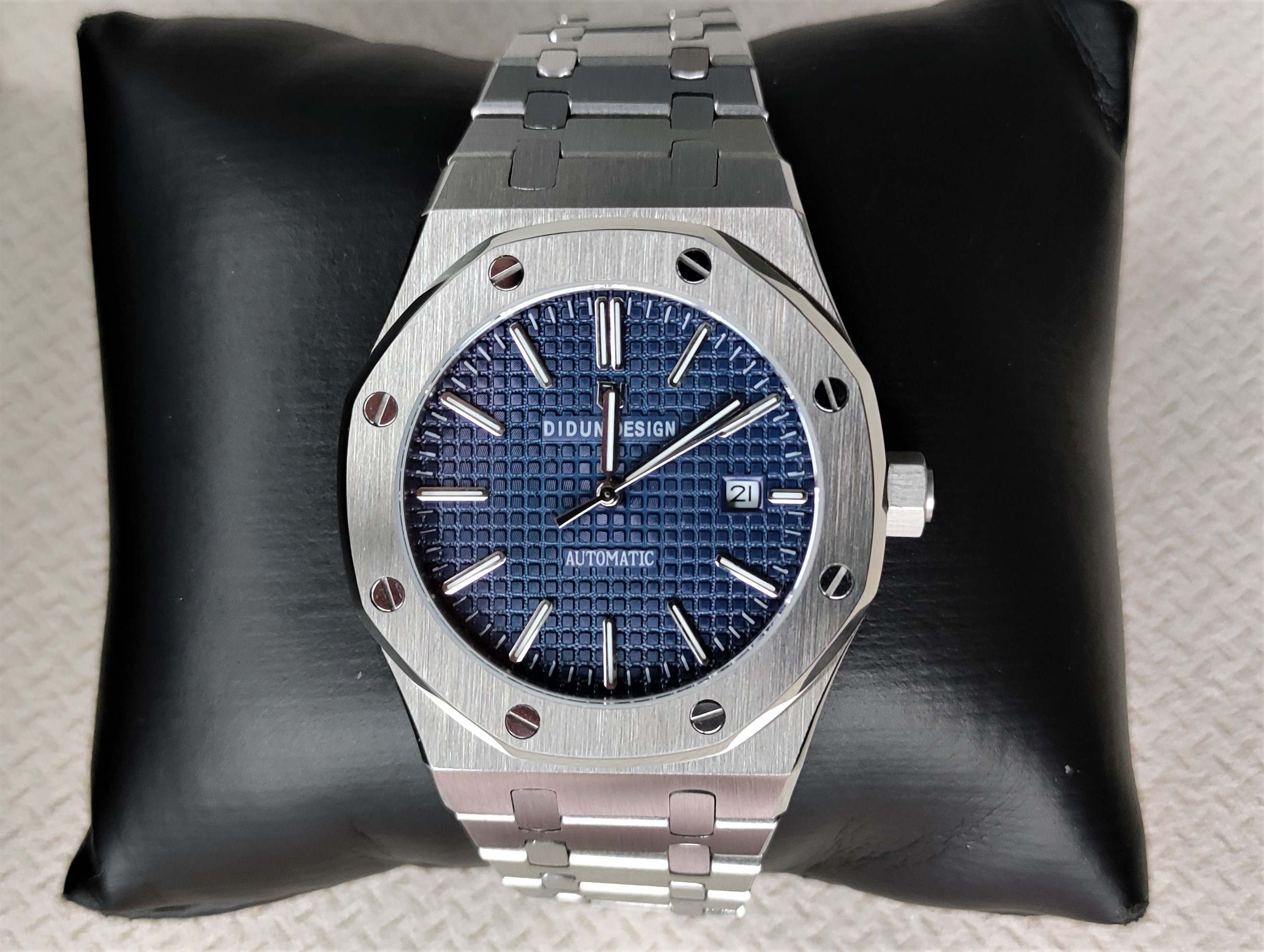Ich habe gerade eine Didun Design Royal One erstanden. Das dem Original von Audemars Piquet nachempfundene Edelstahlarmband ist leide etwas zu kurz. Es kann gerade so geschlossen werden, ist dann aber viel zu straff. Der Umfang des Handgelenks beträgt 20 cm. Die Uhr sollte auch etwas locker getragen werden.