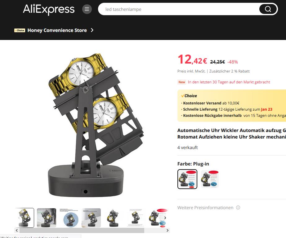 Leider war der einzige, der solche einen Uhrenbeweger liefern konnte, ein Afiliate-Händler auf Amazon, so dass ich ausnahmsweise mal bei Jeff Bezos einkaufen musste
