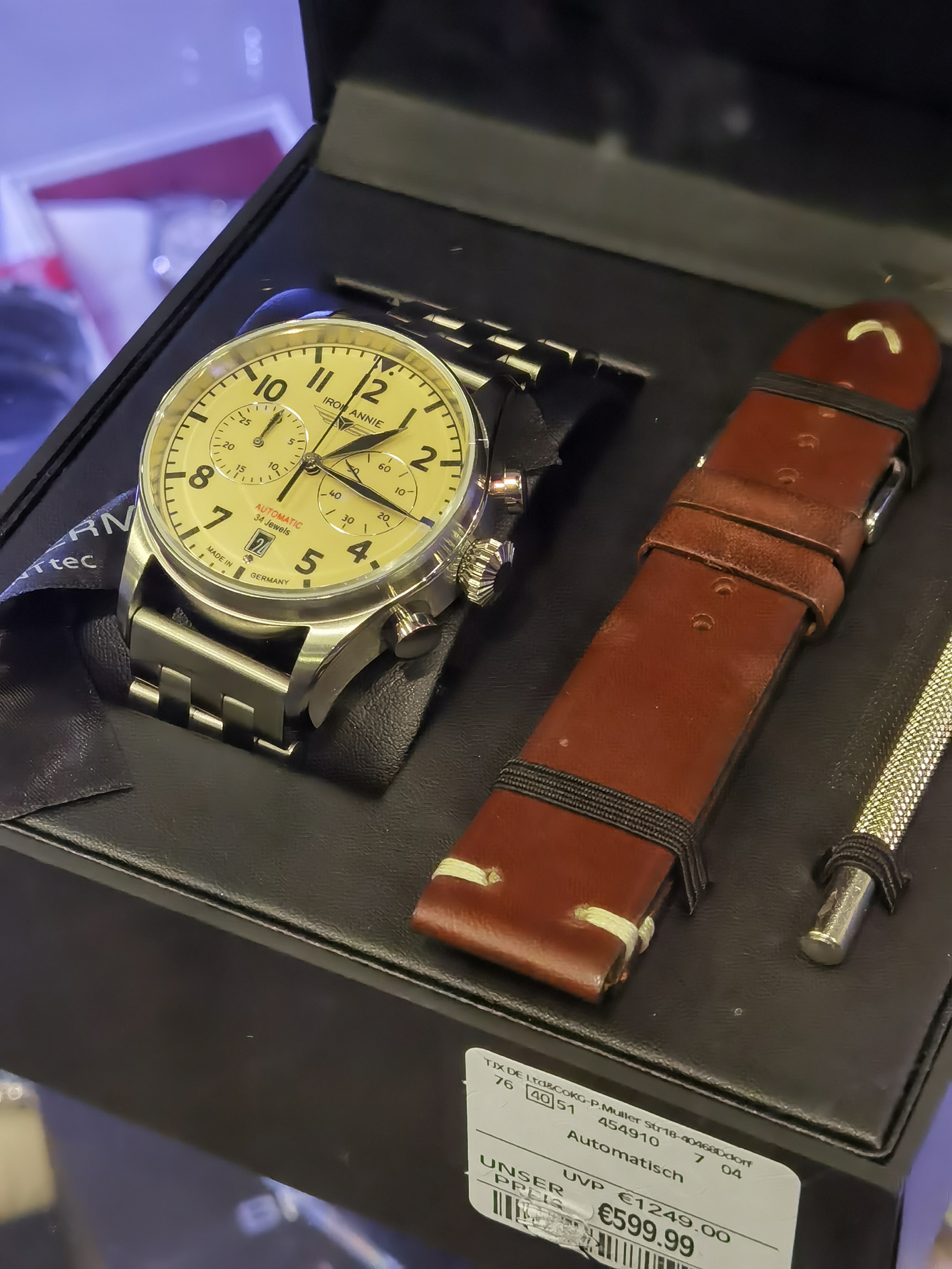 Die Uhr selbst ist ein -Bargain- würde der Engländer sagen! Top ausgerichtete Zeiger auf den ersten Blick, nachher mal genauer begutachten.