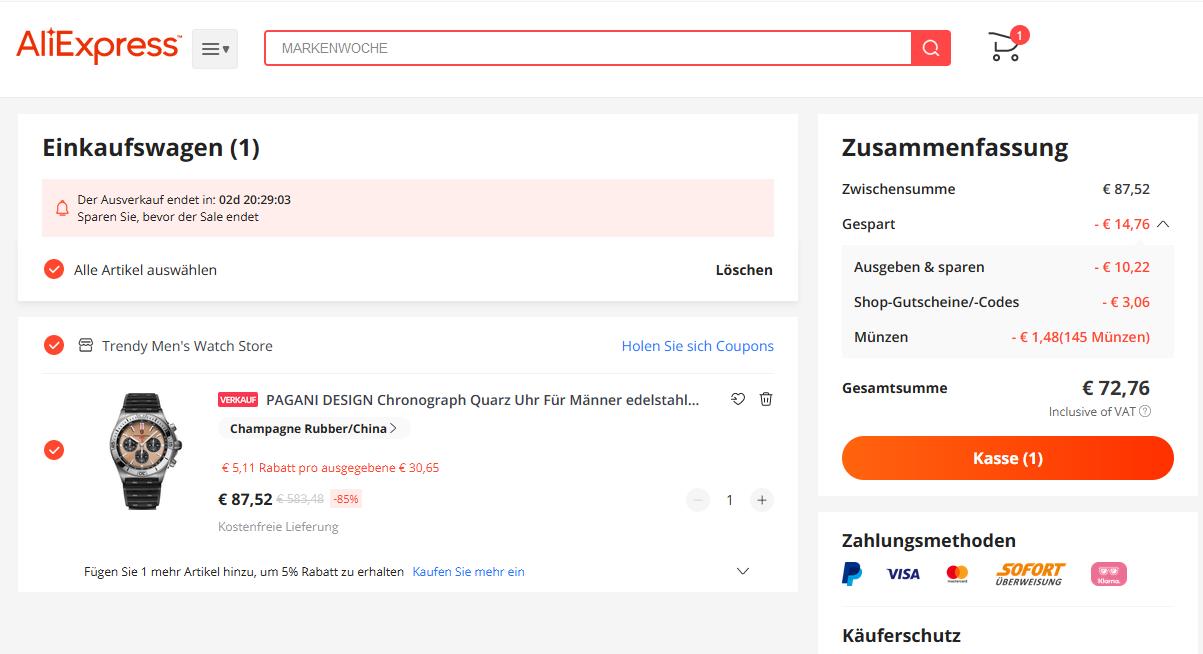 Mein Warenkorb sieht genauso aus.