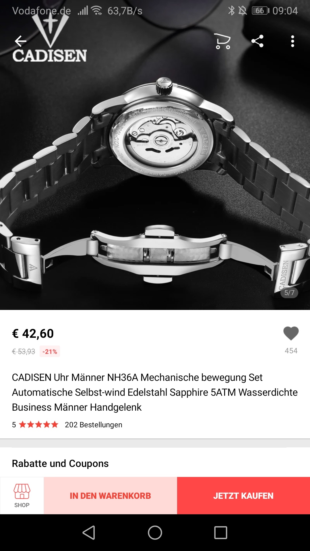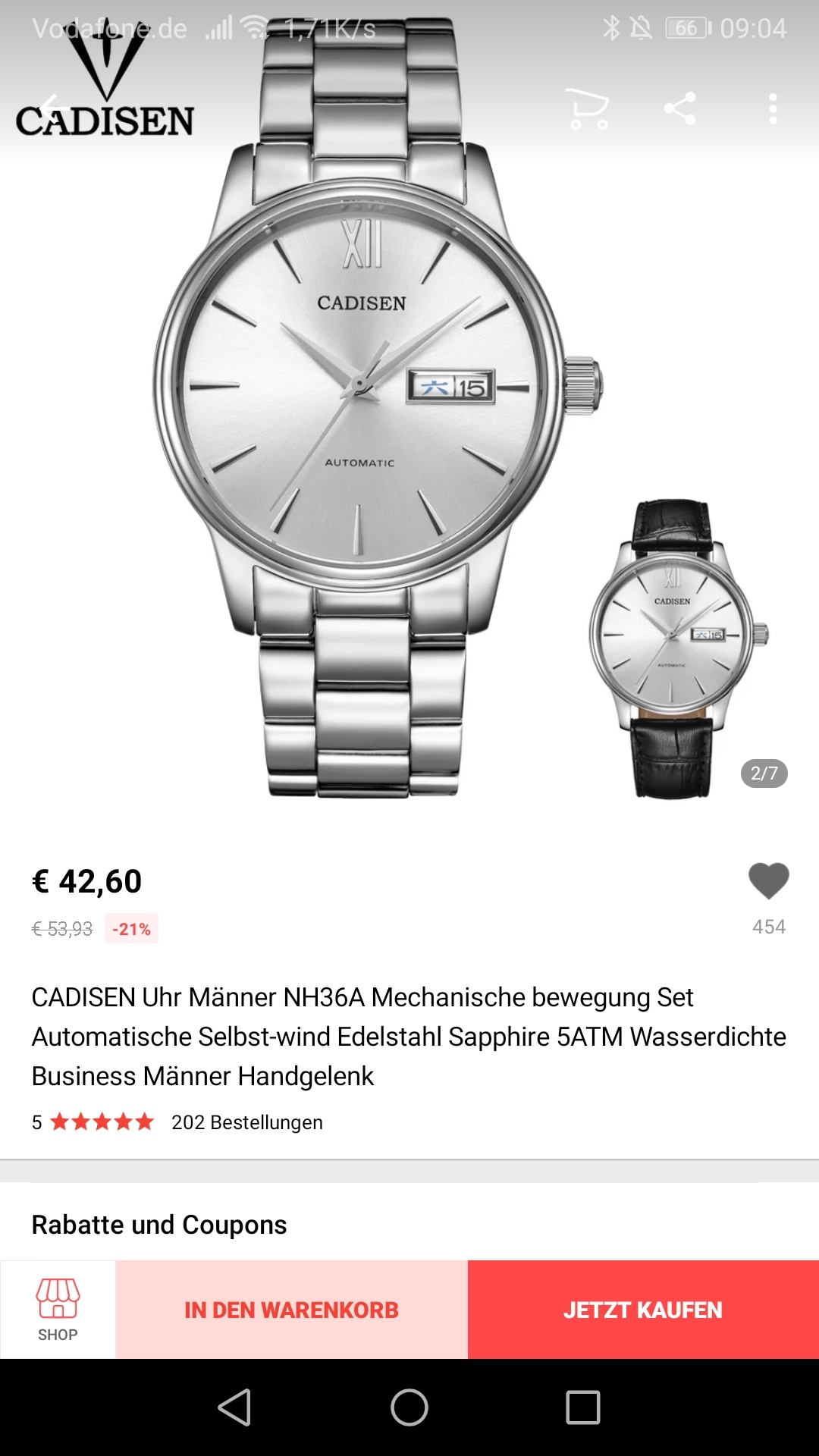 26 Okt. 2019 09:09Die berühmte Cadisen C1032, 42.60€, NH36A, Metall- (eher grottig) und Lederband, wem das Design gefällt, zuschlagen!: