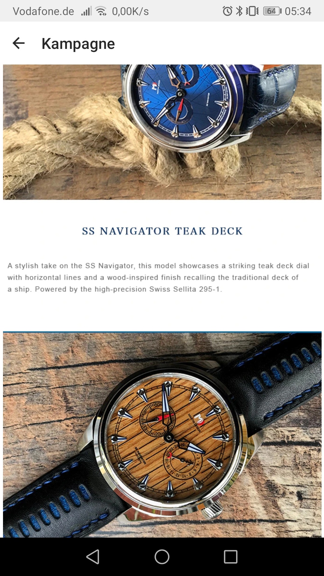 und wunderschönem Teak-Holzdeck (auch in Mariannengrabenblau erhältlich), erinnert sie mich an Uhropas Überfahrt nach New York. Mit Klavierlackschatulle in Eisbergblau, wer noch eine benötigt.