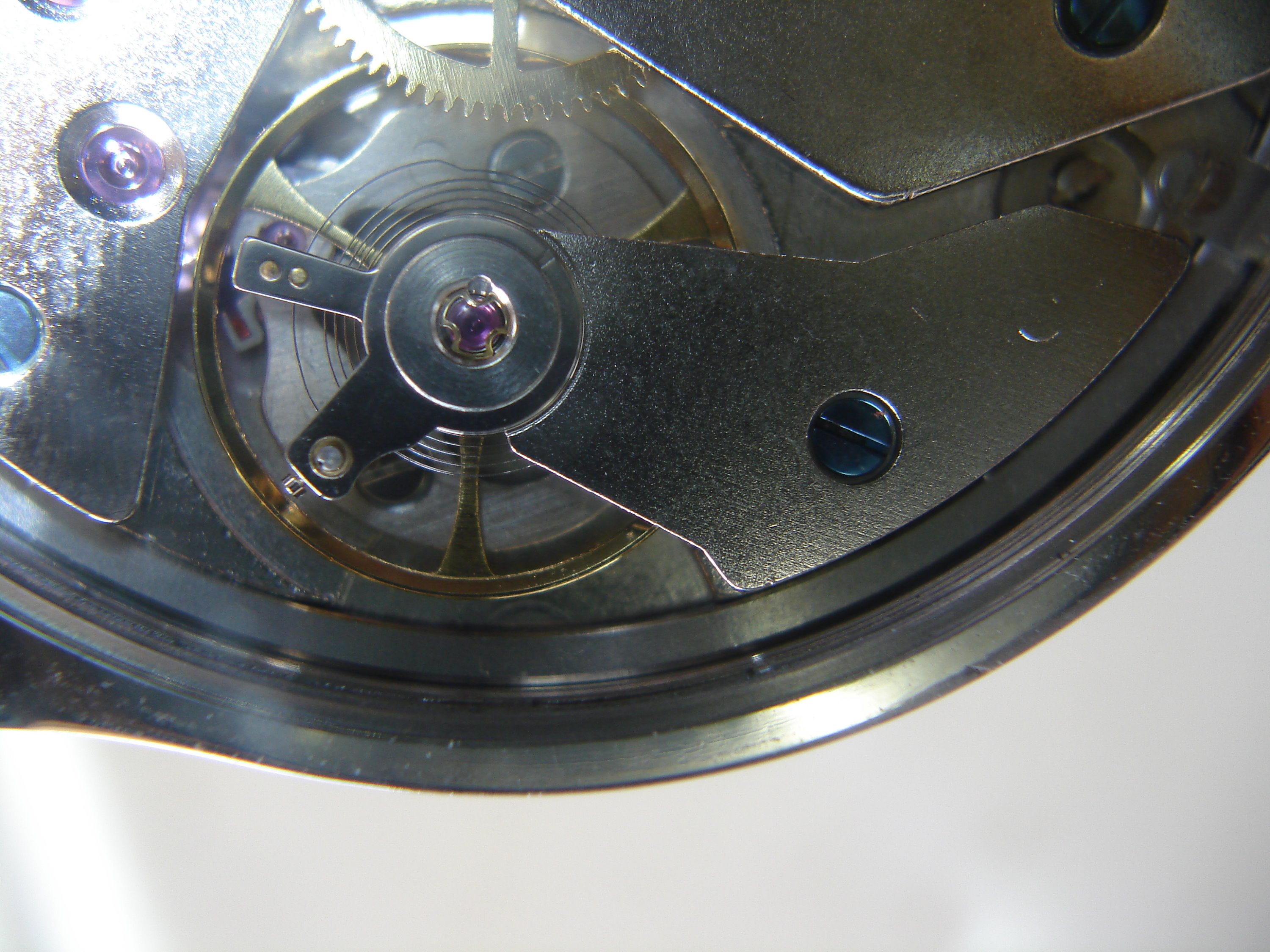 Was mir aber bei den von ihm so genannten "Manufaktur"-Werken auffällt, ist, dass dort von den "gebläuten" Schrauben scheinbar der Lack abgeht