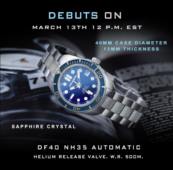 ARAGON bringt heute ein neues Modell seiner "DF" Serie in Stellung. Markenzeichen dieser Reihe ist die charakteristische 3D-Lünette. Nach der "Divetank" zeigt ARAGON erneut ein Herz für Uhrenliebhaber, die eher zu den kleinen Größen tendieren und bingt die Neue ausschliesslich mit 40 Millimeter Durchmesser auf den Markt. Neben einem Safirglas mit Antireflexbeschichtung verfügt die Kleine über ein massives Band mit Fliplock-Schließe sowie ein Heliumventil und ist wasserdicht bis 500 m Tiefe.